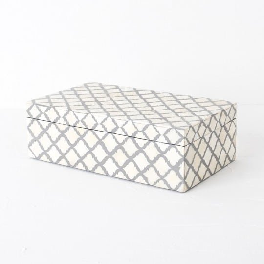 Bone Inlay Rectangular Jewellery Box – Moroccan Dove Grey Decorative Storage Box