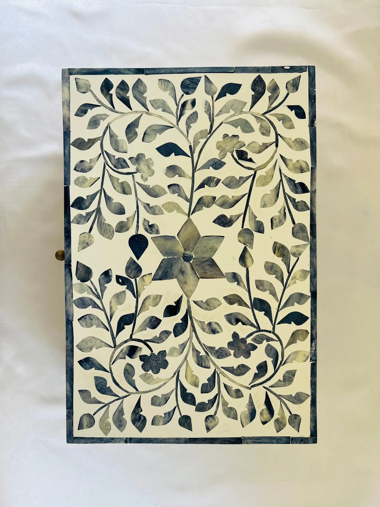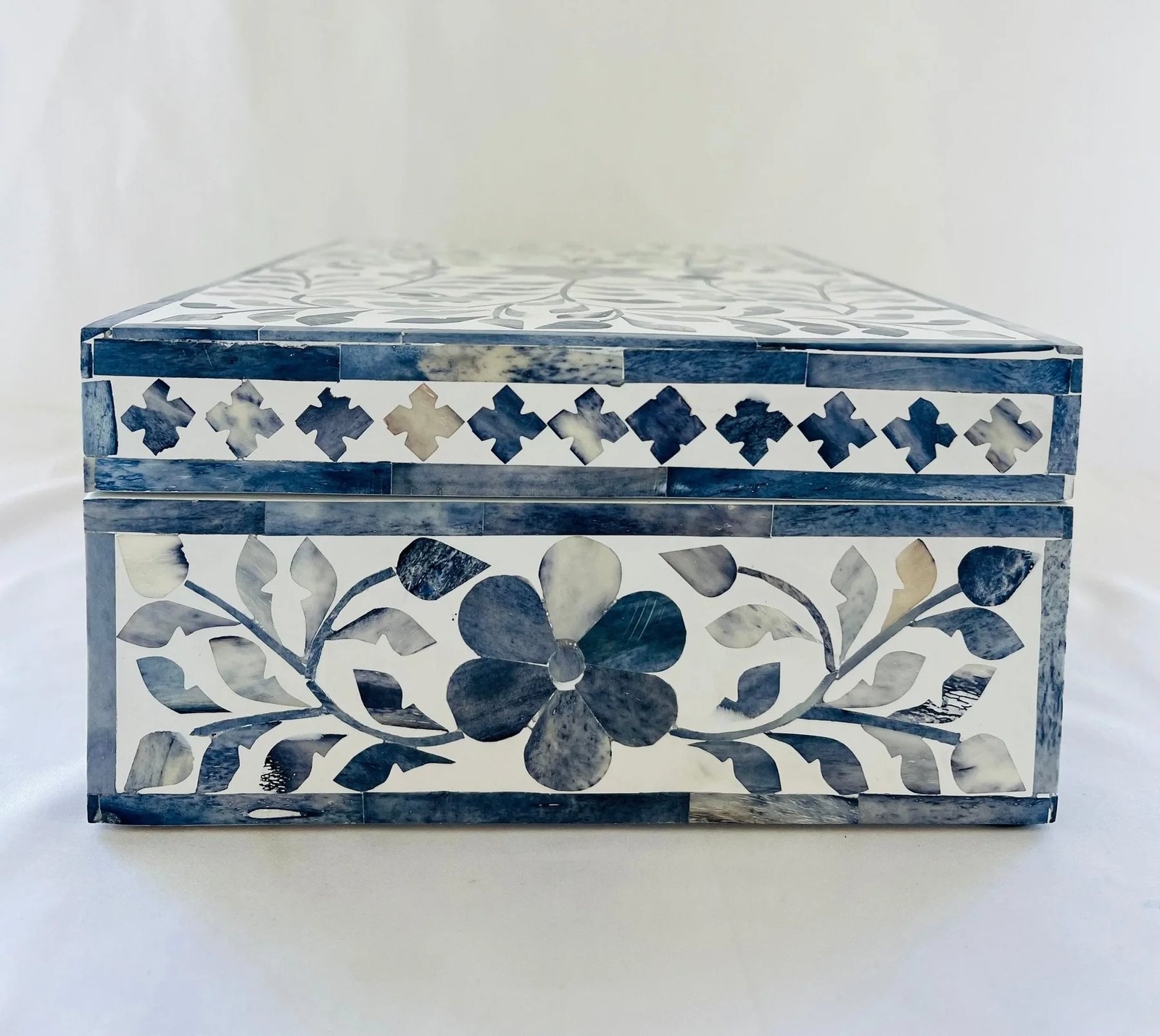 Bone Inlay Jewellery Box – Indigo Floral Decorative Storage Box