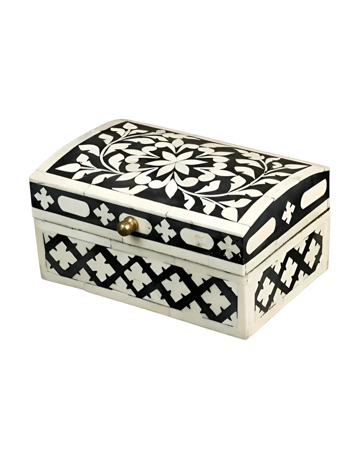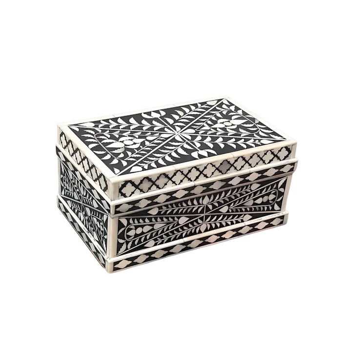 Bone Inlay Rectangular Jewellery Box – Moroccan Black Decorative Storage Box