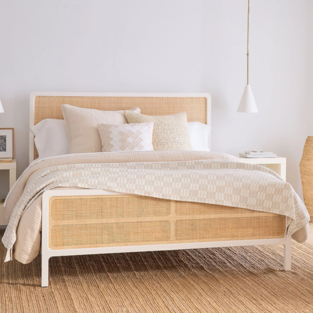 Acacia Wood Cane Bed in Natural Finish | Solid Wood Rattan Bed Frame