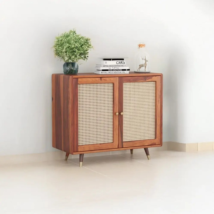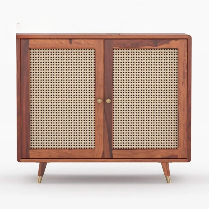 Acacia Wood Cane Cabinet 2 Door – Natural Finish