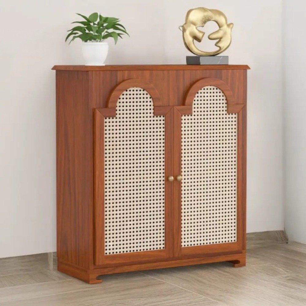 Acacia Wood Cane Cabinet 2 Door – Natural Finish