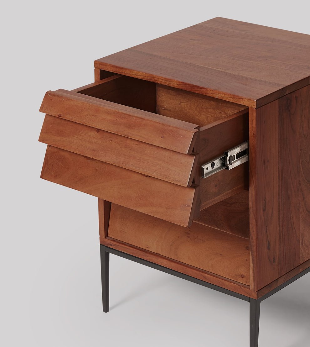 Acacia Wood 2 Drawer Bedside Table – Storage Side Table