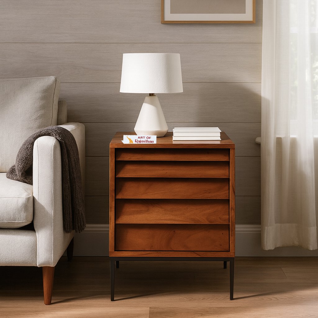 Strong construction and a compact footprint make this bedside table suitable not only for bedrooms but also as a side table in living rooms, guest rooms, or hotel interiors. A perfect choice for customers looking for solid wood bedside tables, acacia wood nightstands, 2 drawer side tables, or modern wooden furniture.