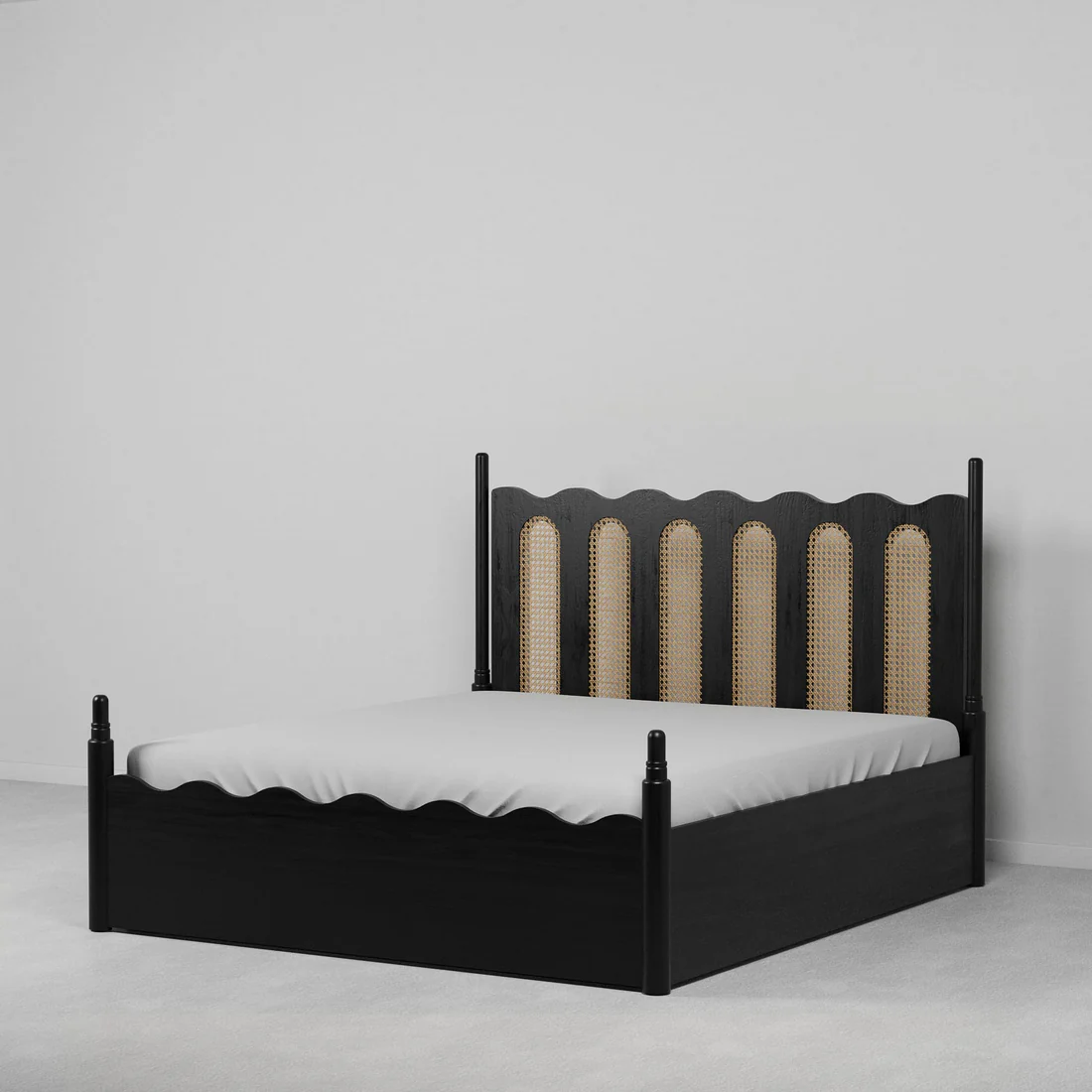 Crafted from premium acacia wood, this cane bed features a beautifully woven natural rattan headboard and footboard that adds warmth and timeless elegance to any bedroom. The solid wood frame ensures durability, while the airy cane detailing enhances comfort and visual lightness. Designed with sturdy legs and a strong central support system, this bed offers lasting stability and a refined natural aesthetic.