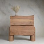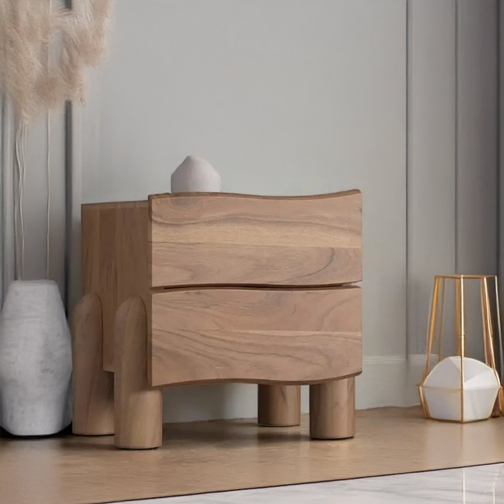 Acacia Wood Curved Bedside Table – 2 Drawer | Modern Wooden Nightstand