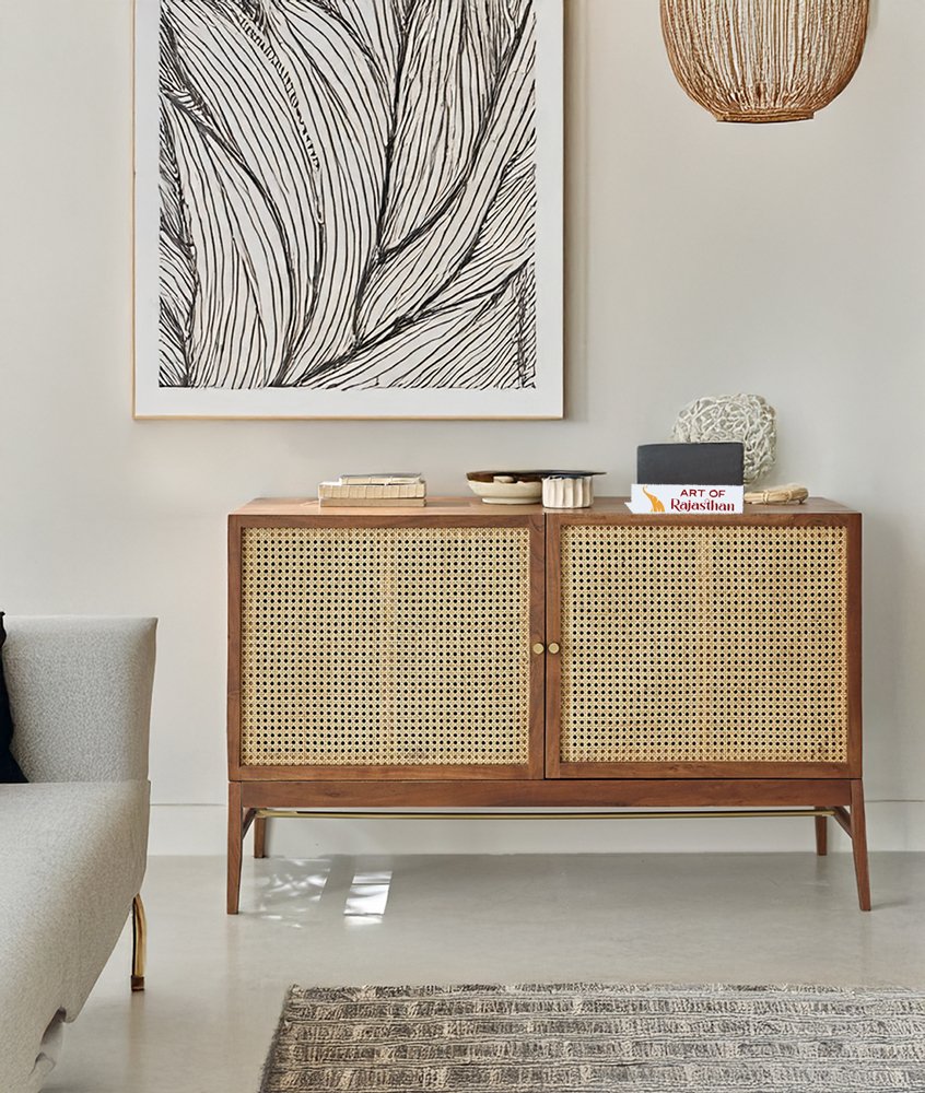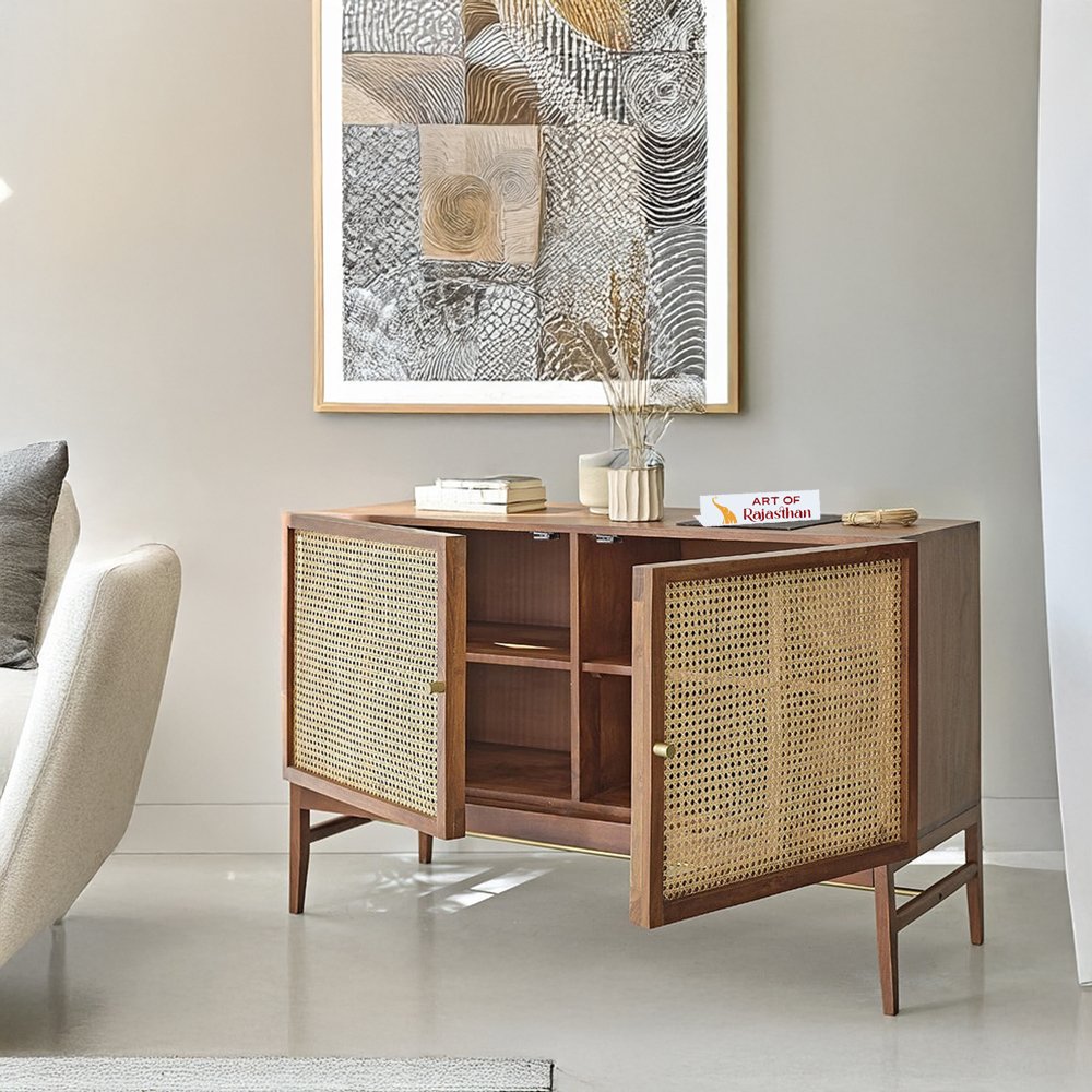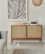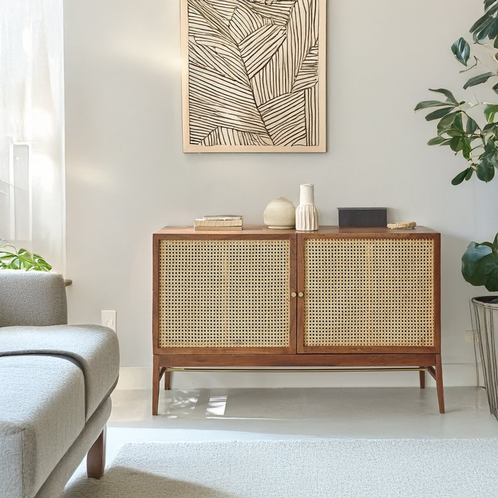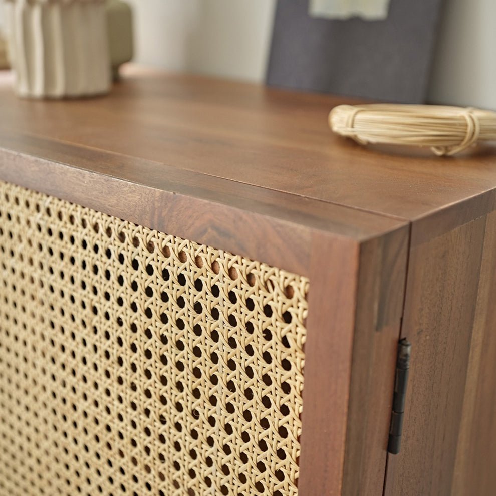 Acacia Wooden 2 Door Rattan Sideboard – Modern Cane Storage Unit