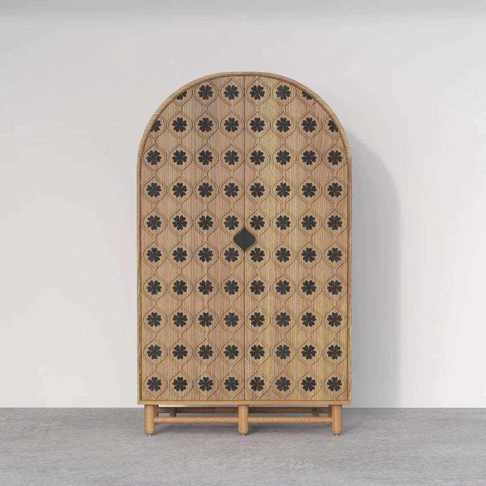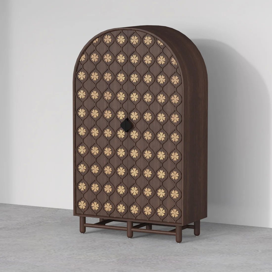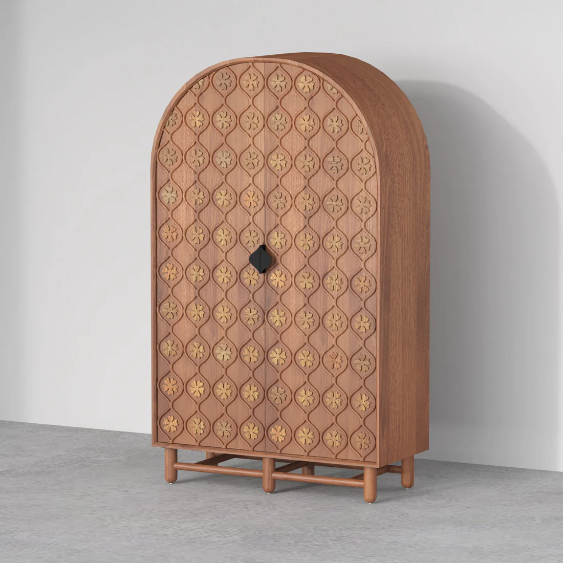 Introduce timeless craftsmanship to your home with this luxury arched wooden cabinet, featuring a beautifully curved silhouette and intricate hand-carved floral motifs across the doors. Crafted from premium solid wood, this cabinet blends artistic detailing with modern minimal design, making it a standout statement piece in any interior.