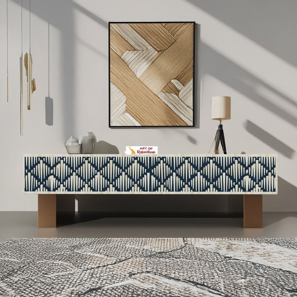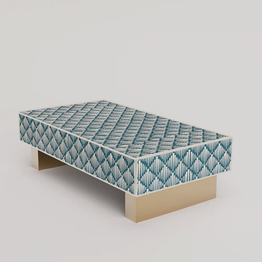 Elevate your living room with the Bone Inlay Rectangular Coffee Table – Diamond Floral. Handcrafted by Art of Rajasthan, this stunning table features an intricate diamond floral pattern created with bone inlay and mother of pearl. Available in rich shades of Black, Teal Blue, Teal Green, Grey, and Indigo, its 130 × 70 × 40 cm frame brings luxury, timeless beauty, and artistic sophistication to your space. A true masterpiece that combines heritage craftsmanship with modern elegance.