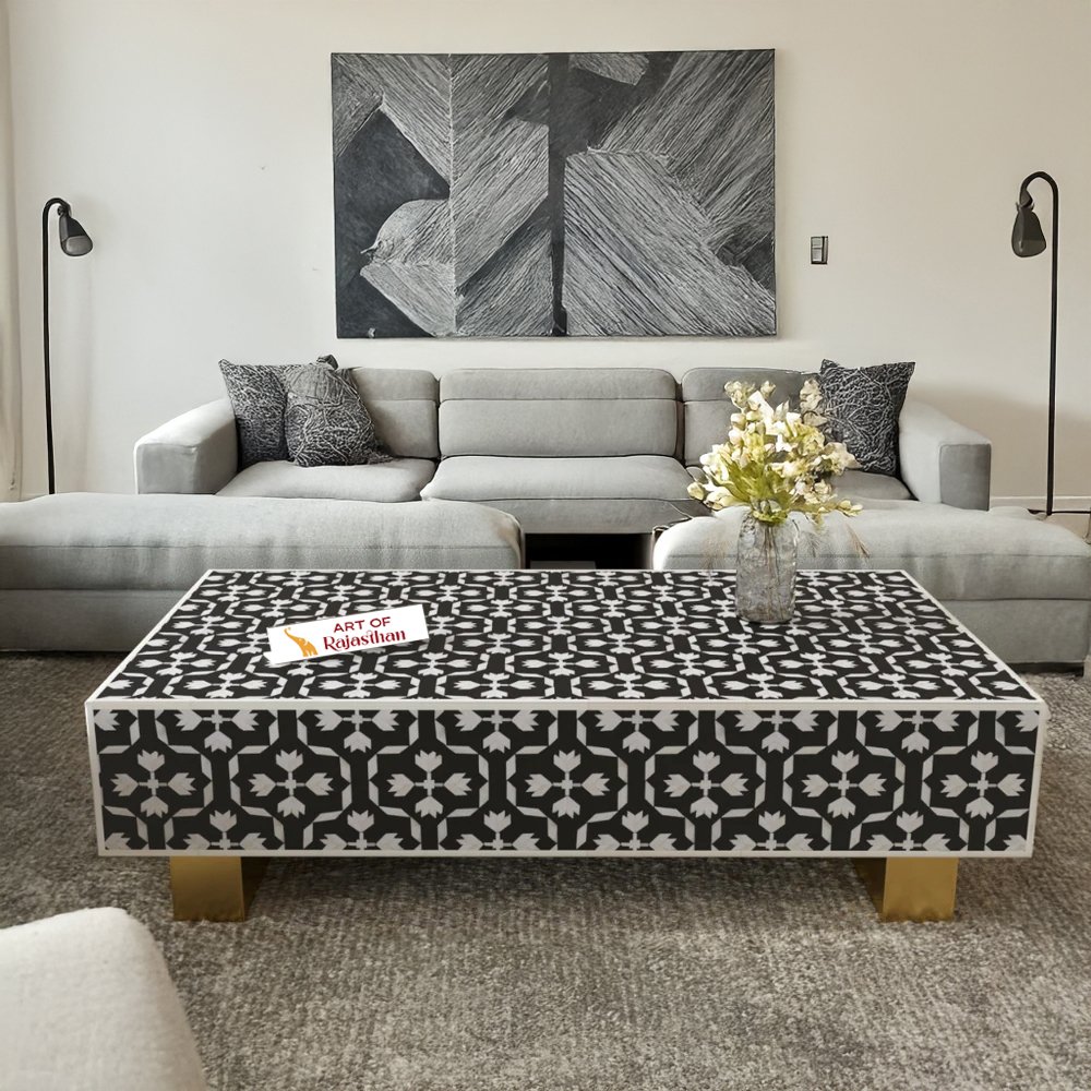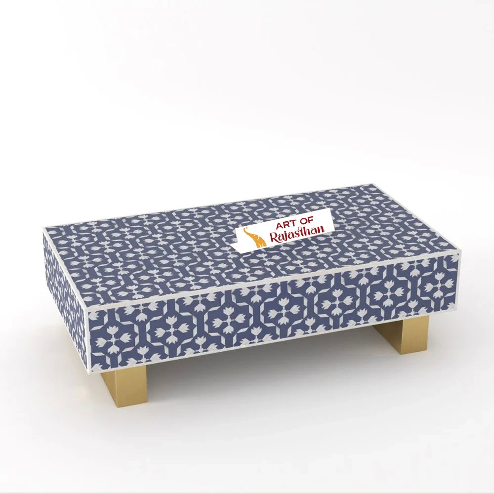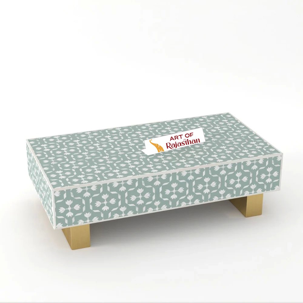 Embrace timeless elegance with the Bone Inlay Rectangular Coffee Table – Lotus Floral. Handcrafted by Art of Rajasthan, this exquisite table features a delicate lotus floral pattern in bone inlay and mother of pearl. Available in rich tones like Black, Teal Blue, Teal Green, Grey, Indigo, and White, its 130 × 70 × 40 cm frame creates a luxurious focal point in any room, blending artistry, sophistication, and nature-inspired beauty seamlessly.