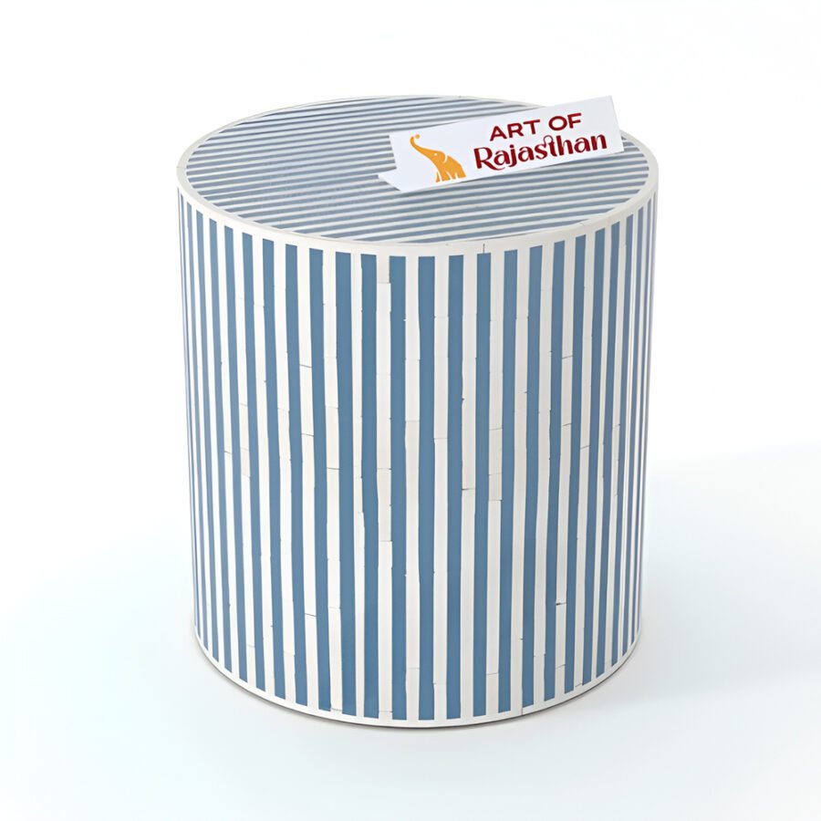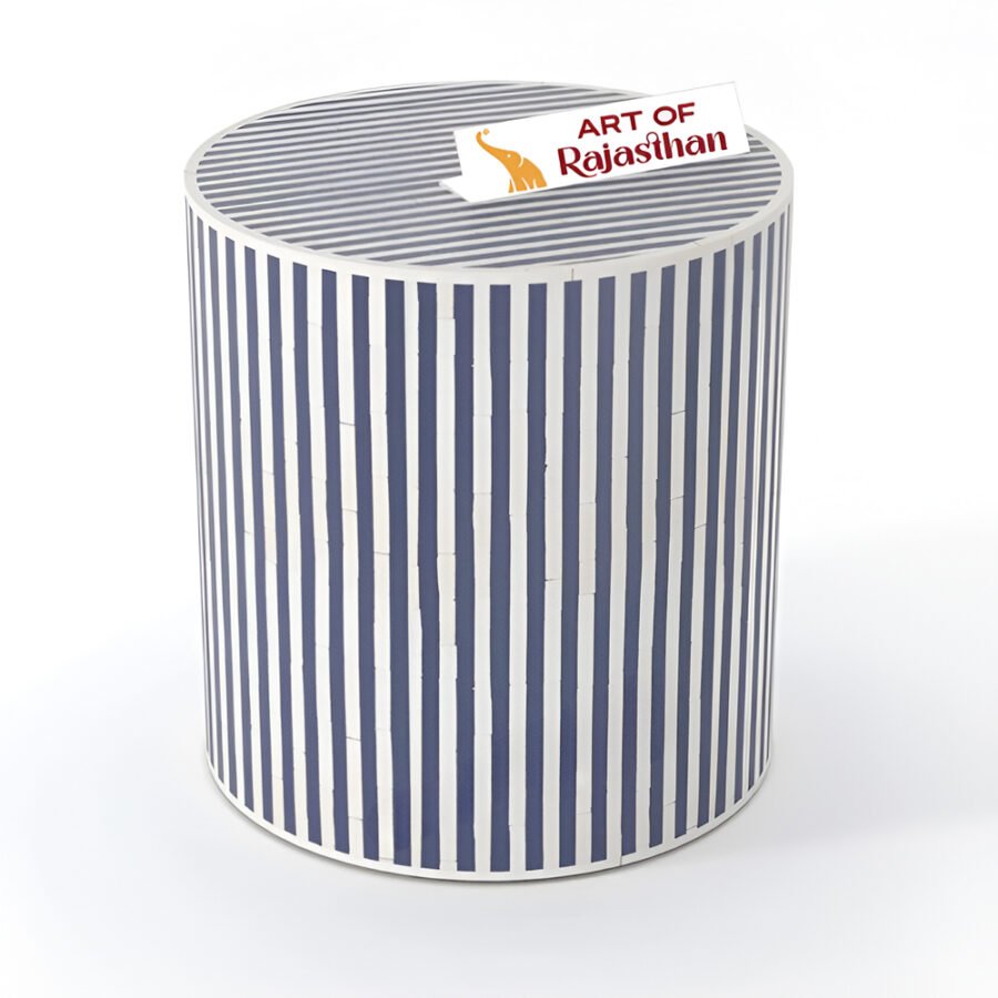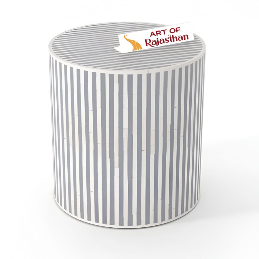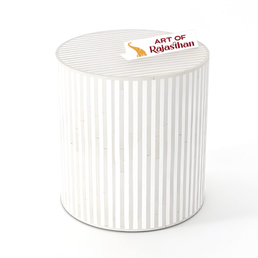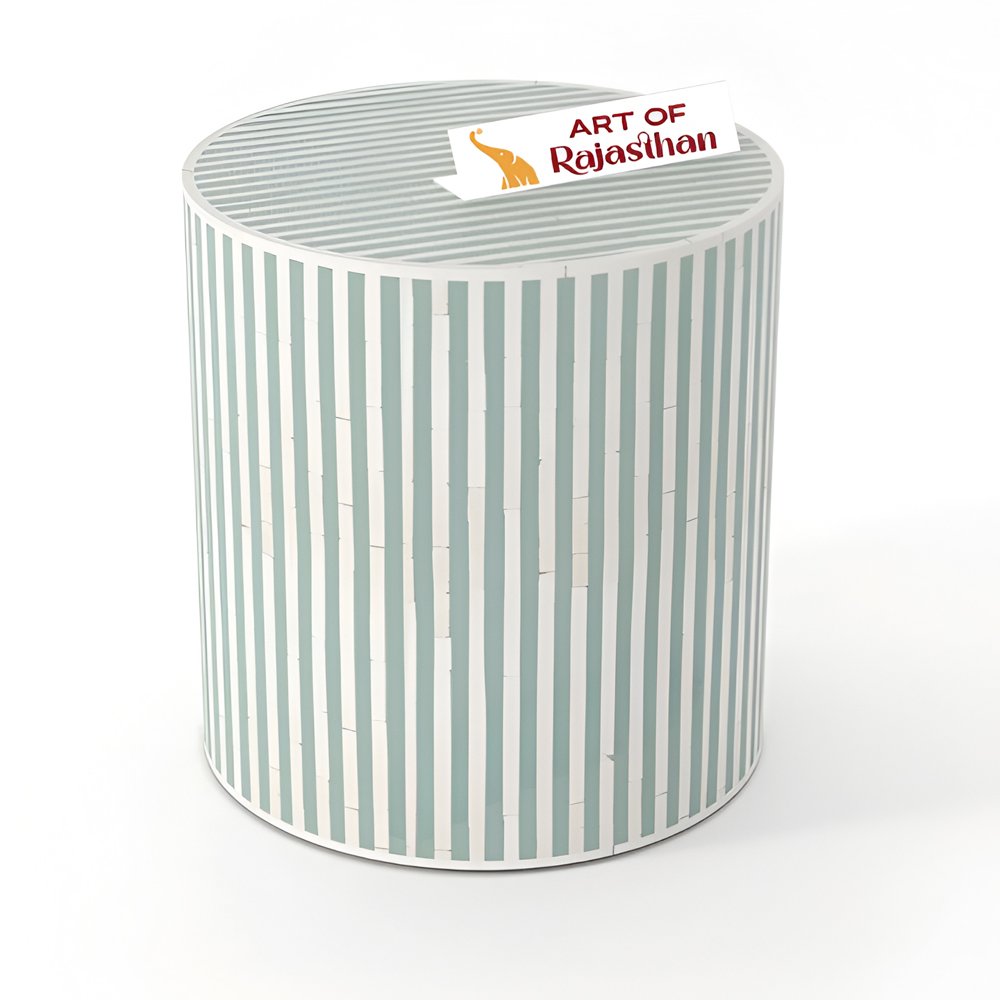 Elevate your home decor with the Bone Inlay Drum Side Table from Art of Rajasthan. This exquisite piece features intricate bone inlay and mother of pearl detailing, offering a sophisticated touch to any room. With a versatile design in colors like Black, White, Grey, Teal Green, Teal Blue, and Indigo, it seamlessly complements modern and traditional interiors. Perfectly sized at Dia. 40 x H. 50 CM, this statement table combines artistry and functionality, making it an ideal addition to your living space.