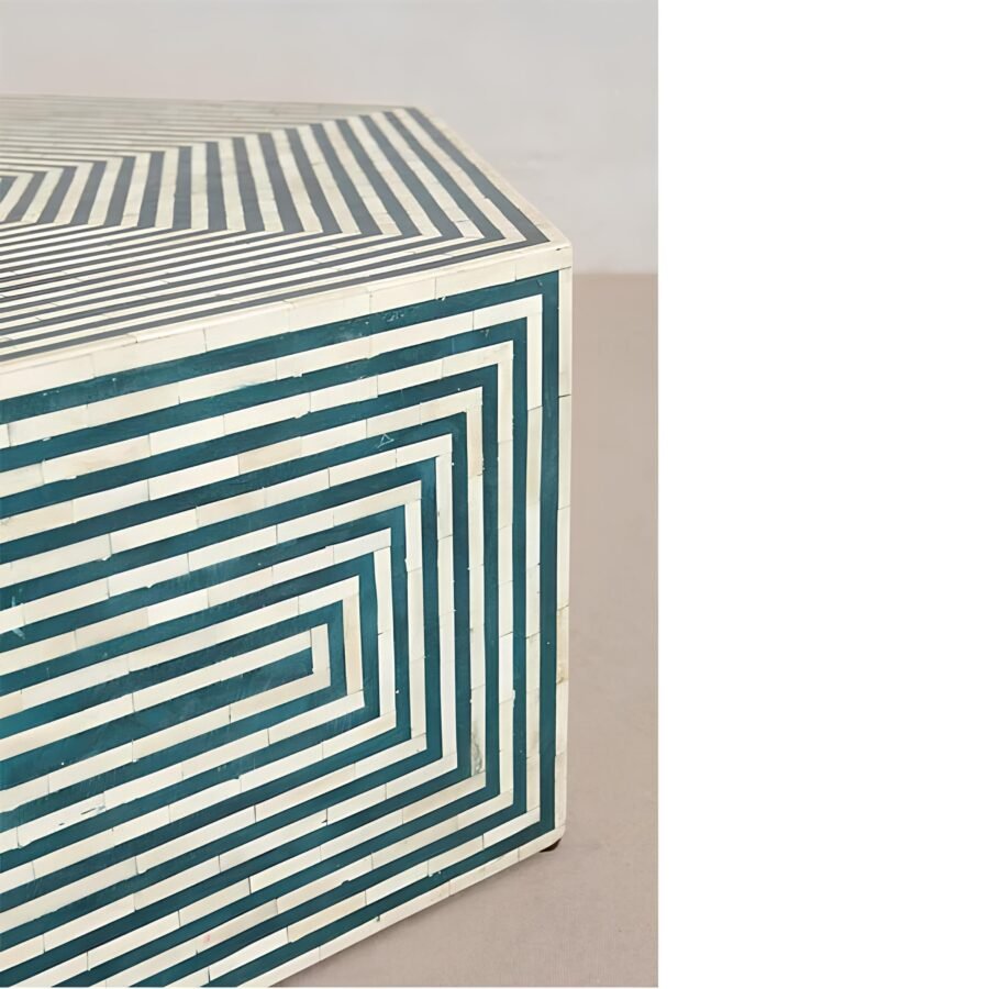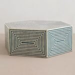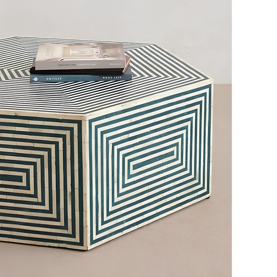 Bone Inlay Hexagonal Coffee Table – Green Geometric