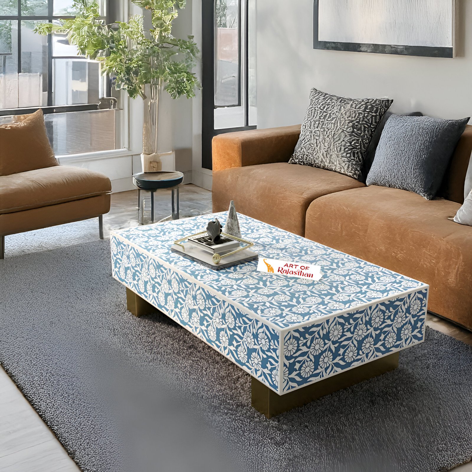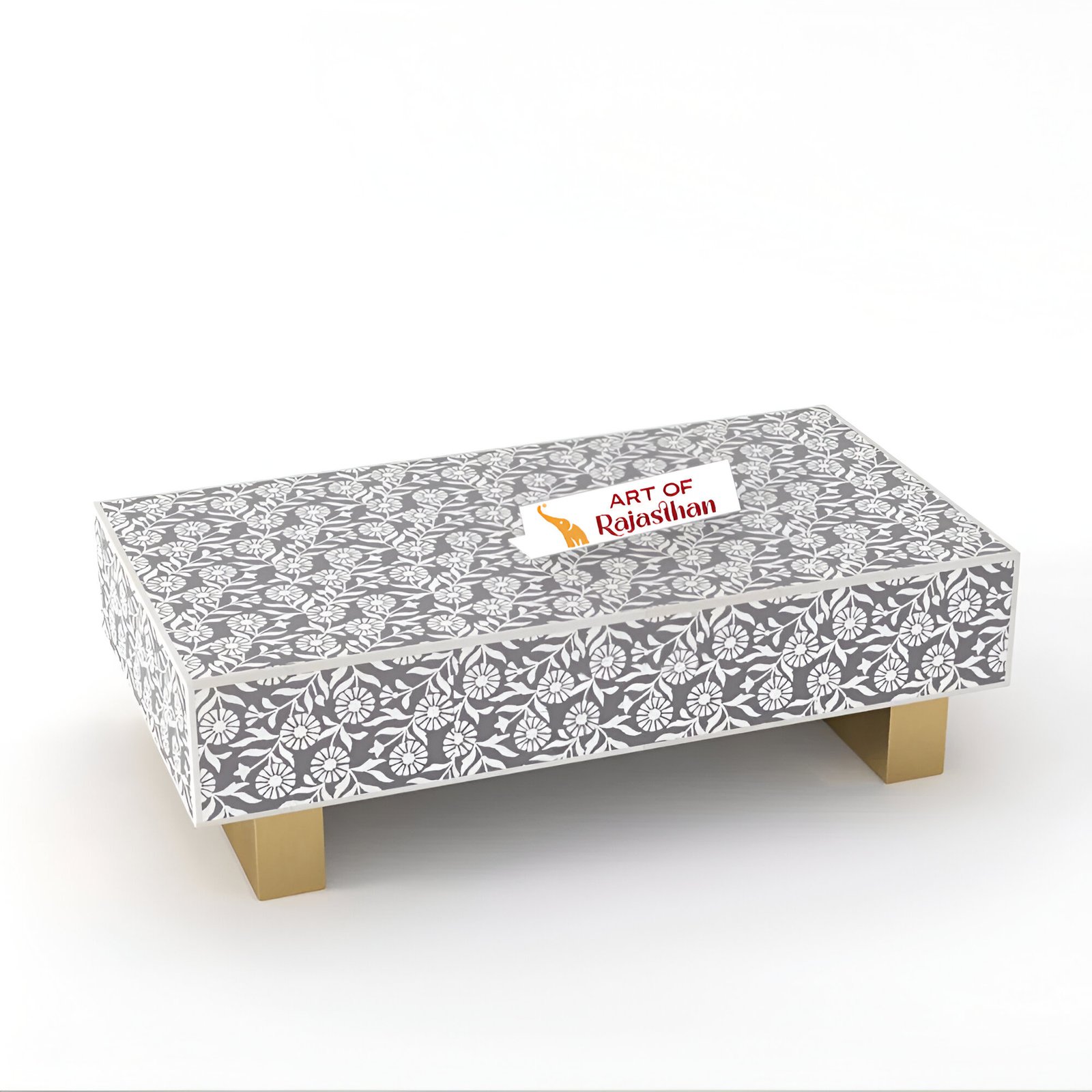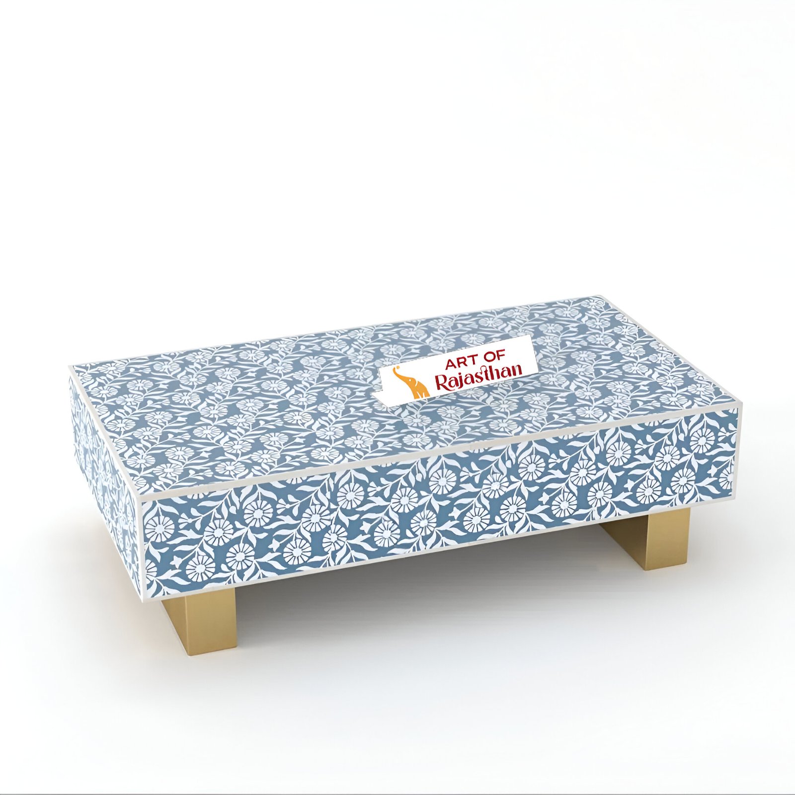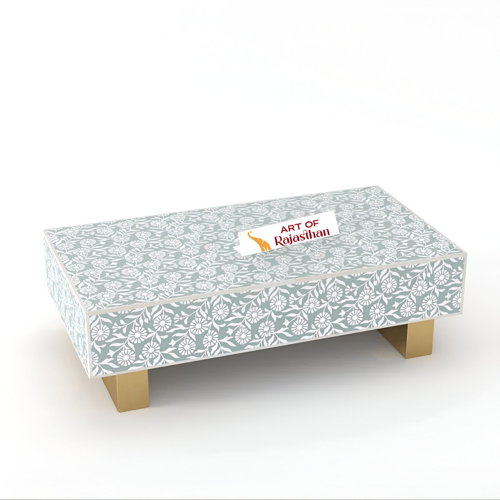 Elevate your living space with the Sunflower Bone Inlay Rectangular Coffee Table from Art of Rajasthan. Handcrafted to perfection using exquisite bone inlay and shimmering mother of pearl, this statement piece blends timeless craftsmanship with modern elegance. Available in striking shades of Black, Teal Blue, Teal Green, Grey, and Indigo, it adds a bold, artistic flair to any room. Measuring 130L x 70D x 40H cm, it’s the perfect fusion of luxury, style, and function.