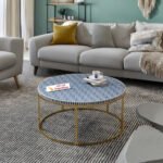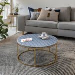 Bone Inlay Round Coffee Table with Metal Stand – Geo