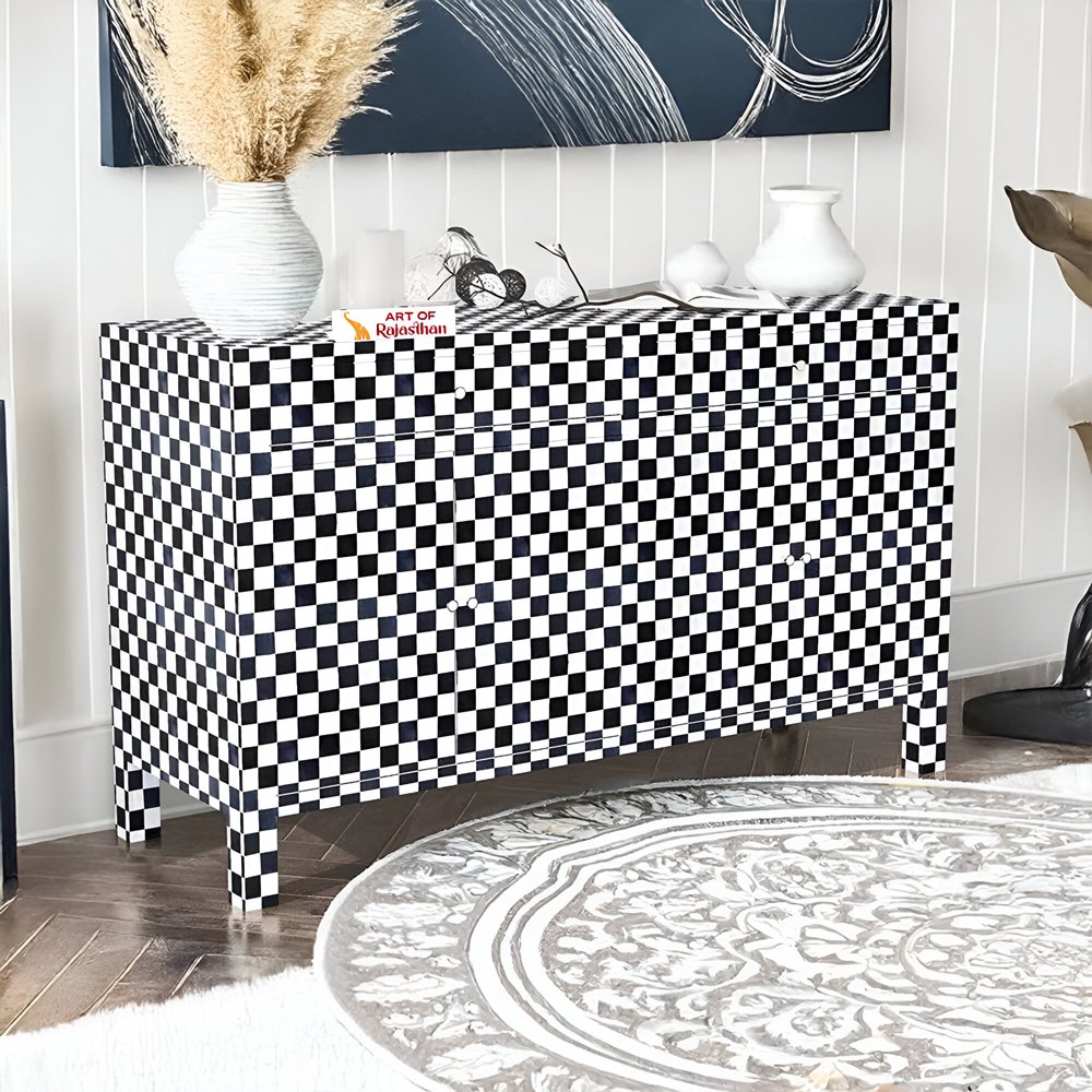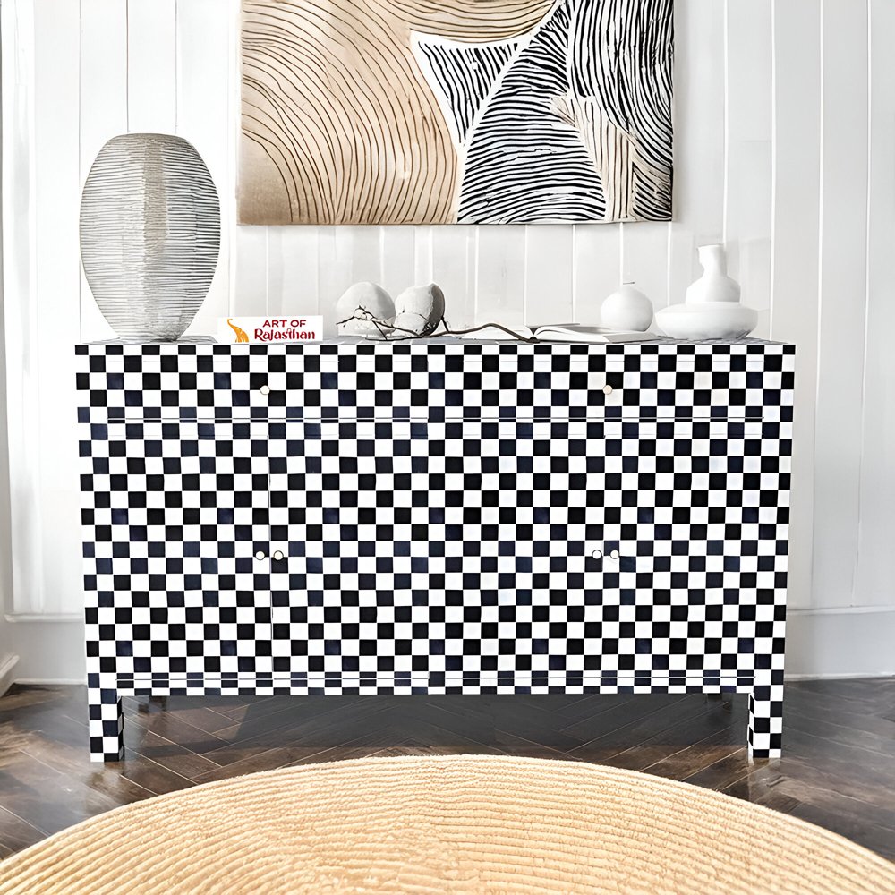 Bone Inlay Sideboard – Checkerboard | Art of Rajasthan