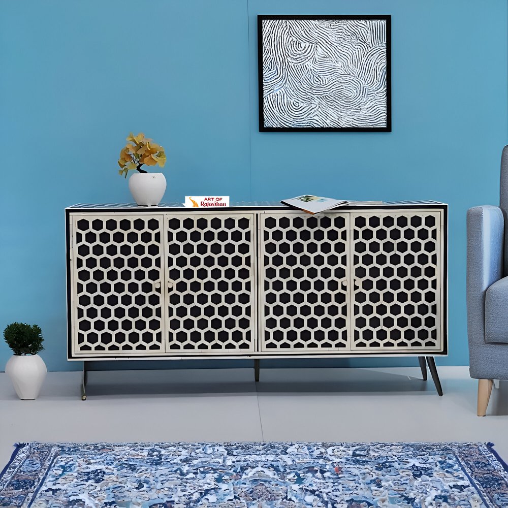 Timeless Elegance – Honeycomb Black & White Bone Inlay Sideboard