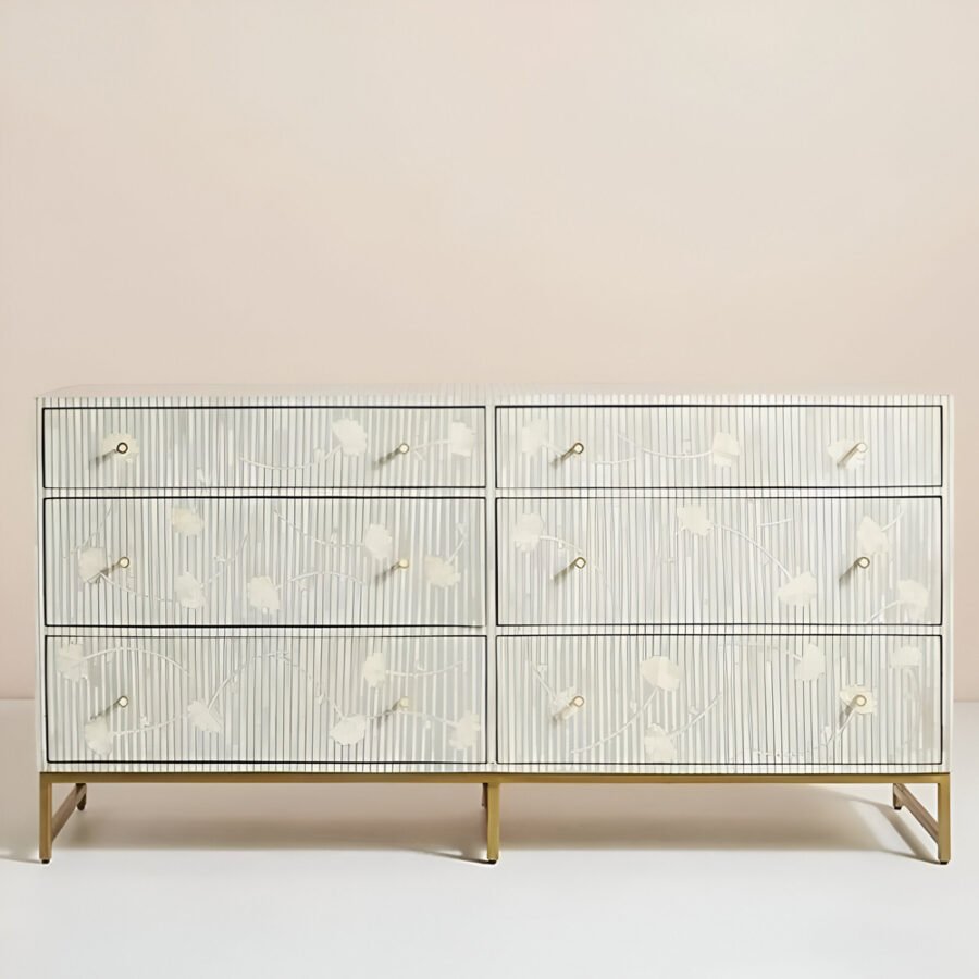 Graceful Sophistication – Motif Floral Bone Inlay Sideboard