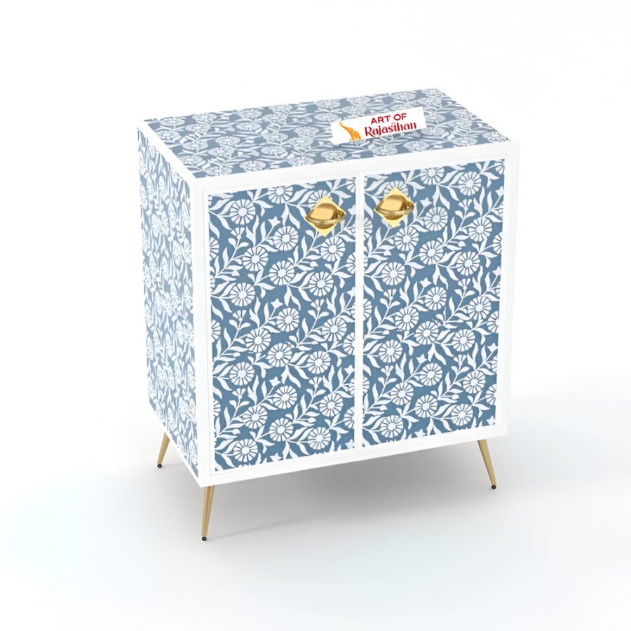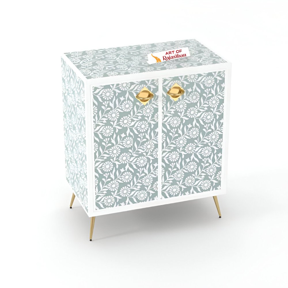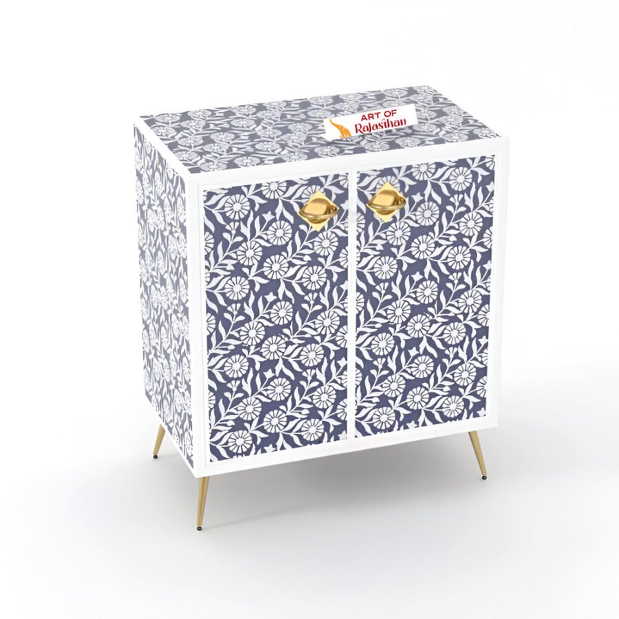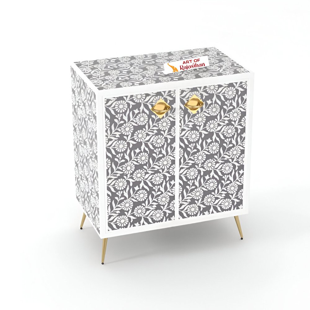 Brighten your interiors with the Bone Inlay 2 Door Storage Cabinet – Sunflower by Art of Rajasthan. Handcrafted with intricate sunflower-inspired bone inlay and shimmering mother of pearl, this piece blends traditional Indian artistry with modern sophistication. Set in rich resin and sturdy engineered wood, and finished with brass accents, it offers both style and smart storage. Available in Classic Black, Grey, Teal Green, Teal Blue, and Indigo, it’s a stunning focal point for any space. Dimensions: W100 x D45 x H90 cm Material: Bone Inlay, Mother of Pearl, Resin, Engineered Wood, Brass Color Options: Classic Black, Grey, Teal Green, Teal Blue, Indigo.