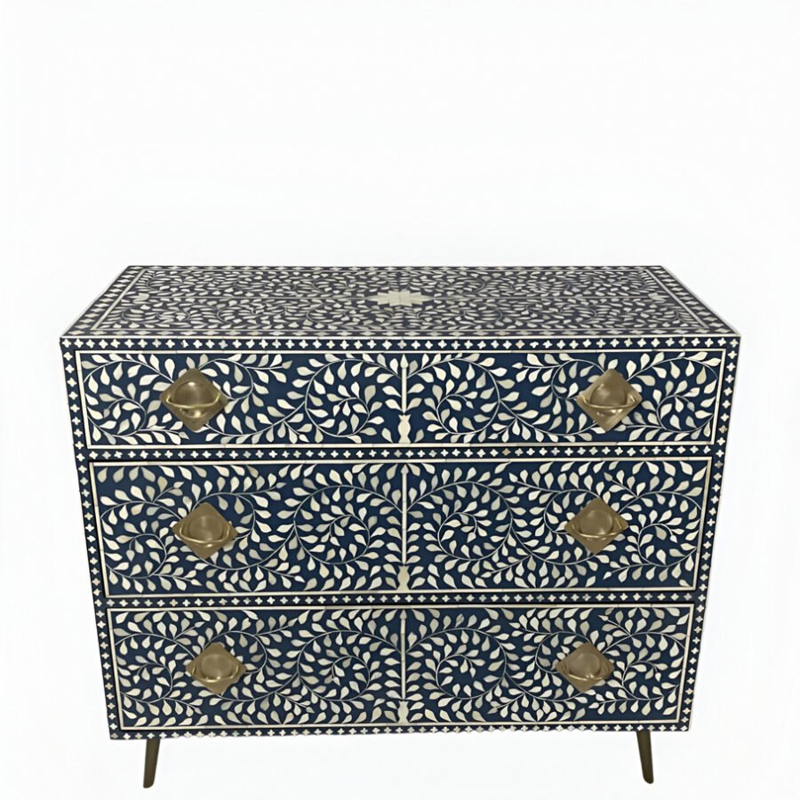 Experience luxury redefined with this stunning Mother of Pearl Inlay Cabinet by Art of Rajasthan. Handcrafted by skilled artisans, it features a striking black & white palette and intricate inlay work that radiates elegance.