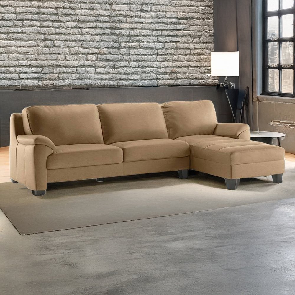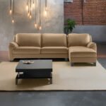 Elevate your living space with the D.C. Leatherette Upholstered 3-Seater Sectional Sofa with Chaise by Art of Rajasthan. Designed for comfort and style, it features premium leatherette upholstery and sleek, black-stained wooden legs. The spacious seating and chaise lounge offer a perfect blend of luxury and relaxation. Available in rich tones of Brown, Ivory, and Mahogany to suit modern interiors. Crafted with a solid wood frame and polished wooden legs, this piece features medium-hard seating with 20 DNS HR soft foam, cropped foam backrest, and rich leatherette upholstery.