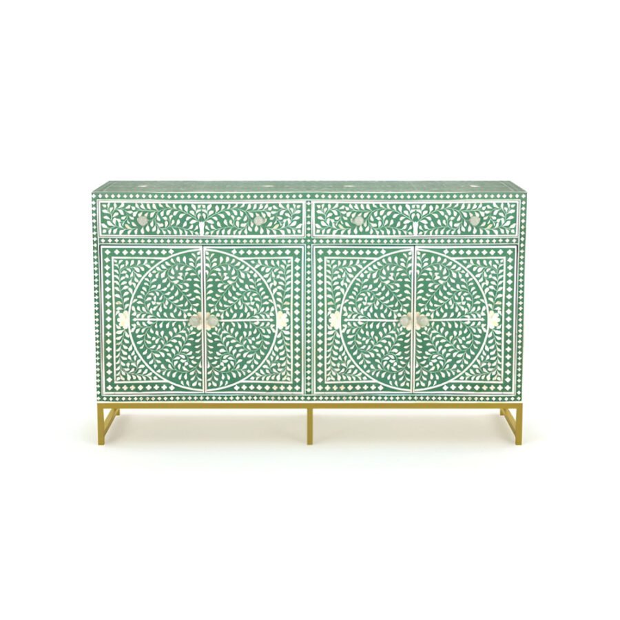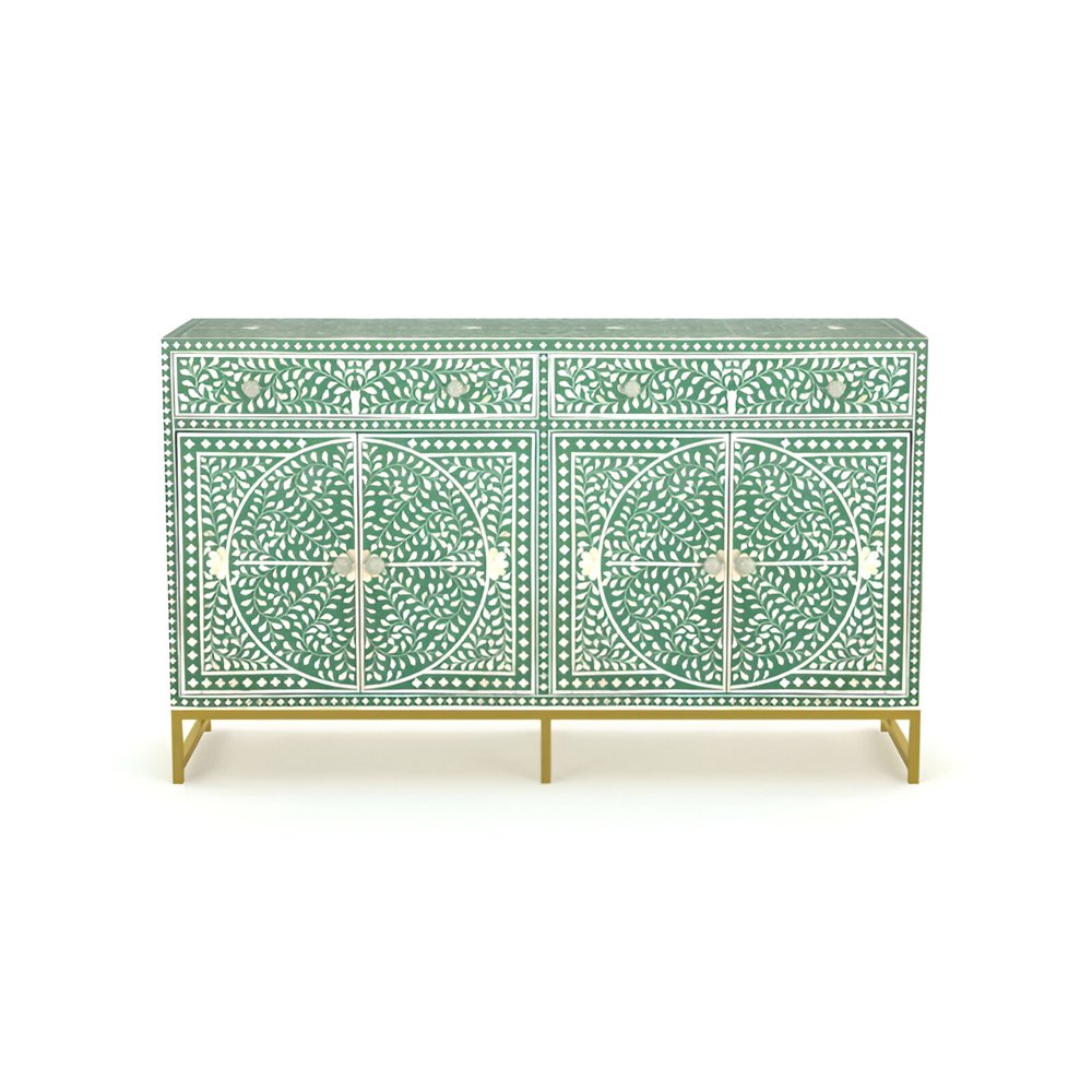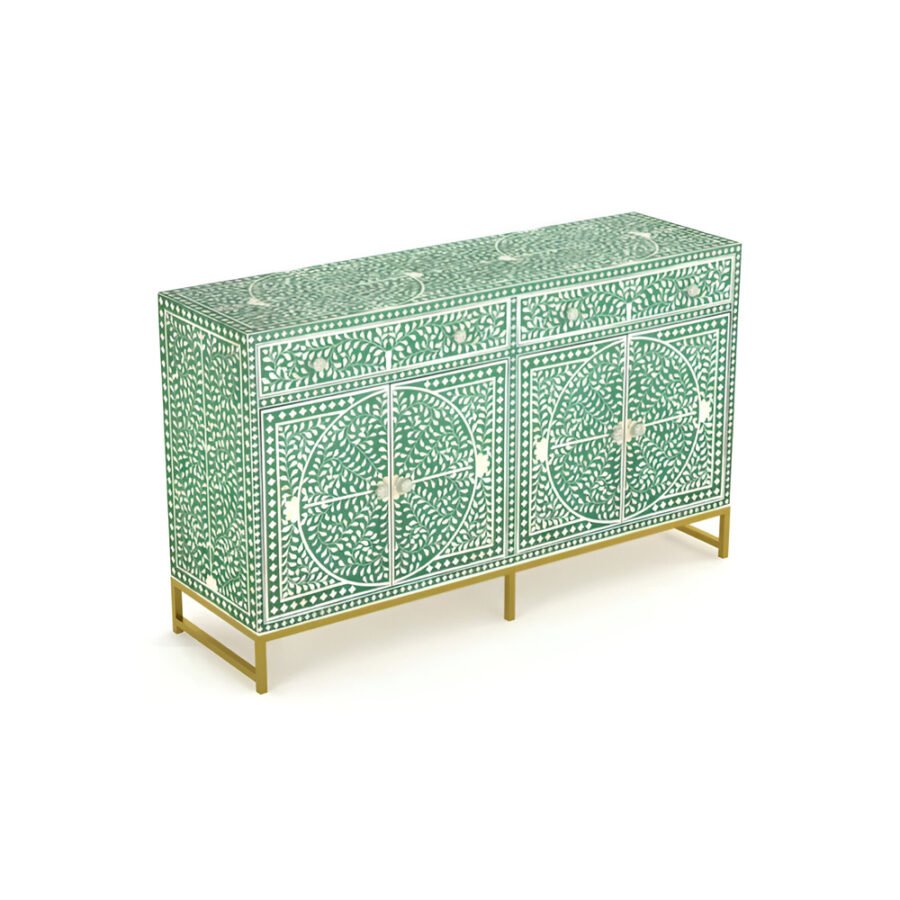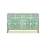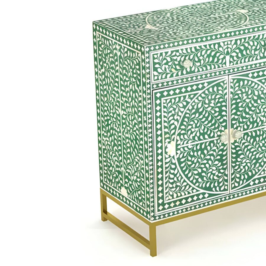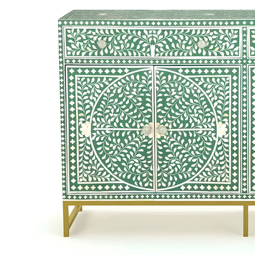 Elegant Mother of Pearl Inlay Sideboard – Floral Green