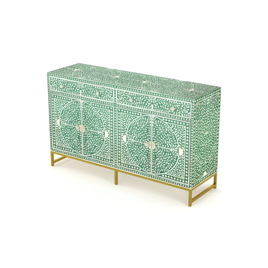 Elegant Mother of Pearl Inlay Sideboard – Floral Green | Art of Rajasthan