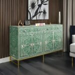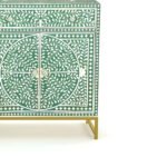 Breathe life into your home with the enchanting Floral Green Mother of Pearl Inlay Sideboard by Art of Rajasthan. Handcrafted to perfection, this masterpiece features delicate floral motifs in shimmering mother of pearl, set against a lush green resin backdrop for a look that’s both vibrant and timeless. Crafted with engineered wood, elegant brass hardware, and rich bone inlay, this sideboard (L177 x D45 x H84 CM) delivers functional beauty and luxurious storage. A true celebration of nature and artistry — it’s more than furniture; it’s a living statement.