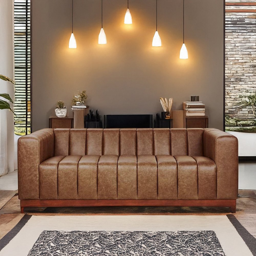 Contemporary Faux Leather Upholstered 3-Seater Sofa – Saddle Brown Finish
