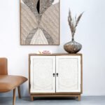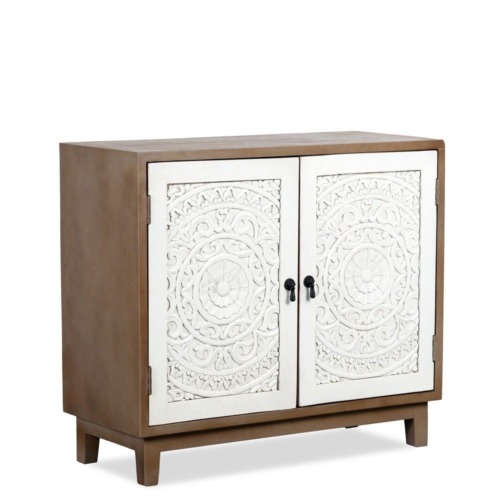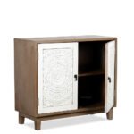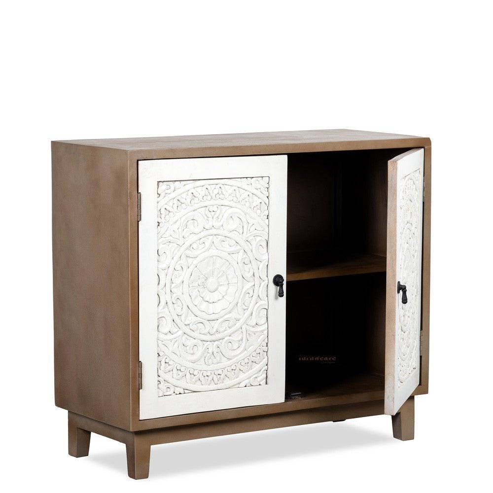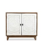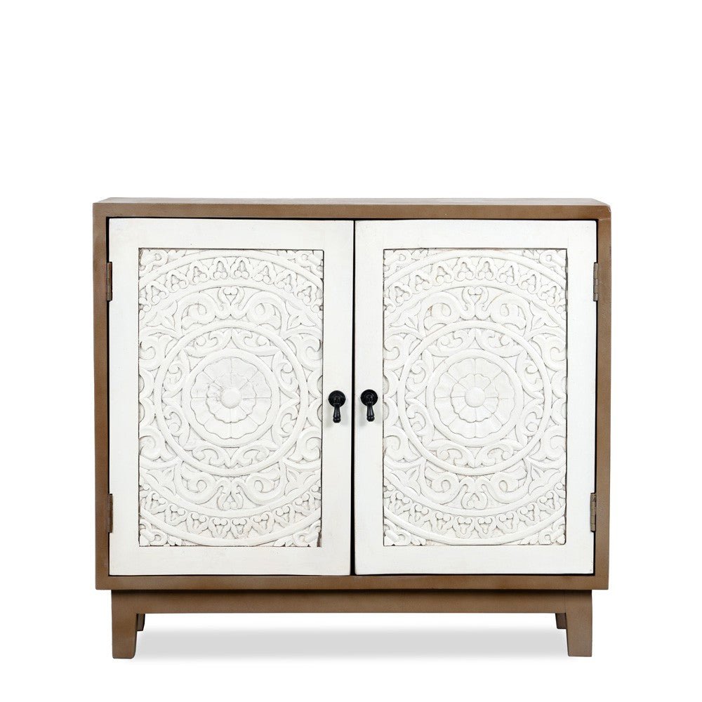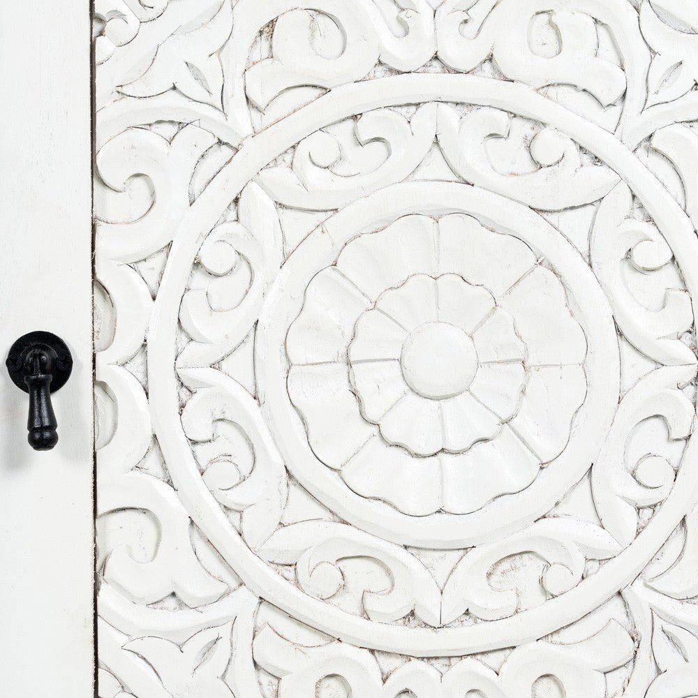 Hand Carved 2 Door Mango Wood Cabinet – White