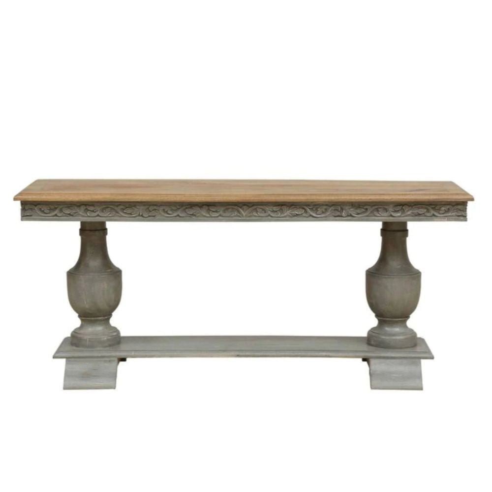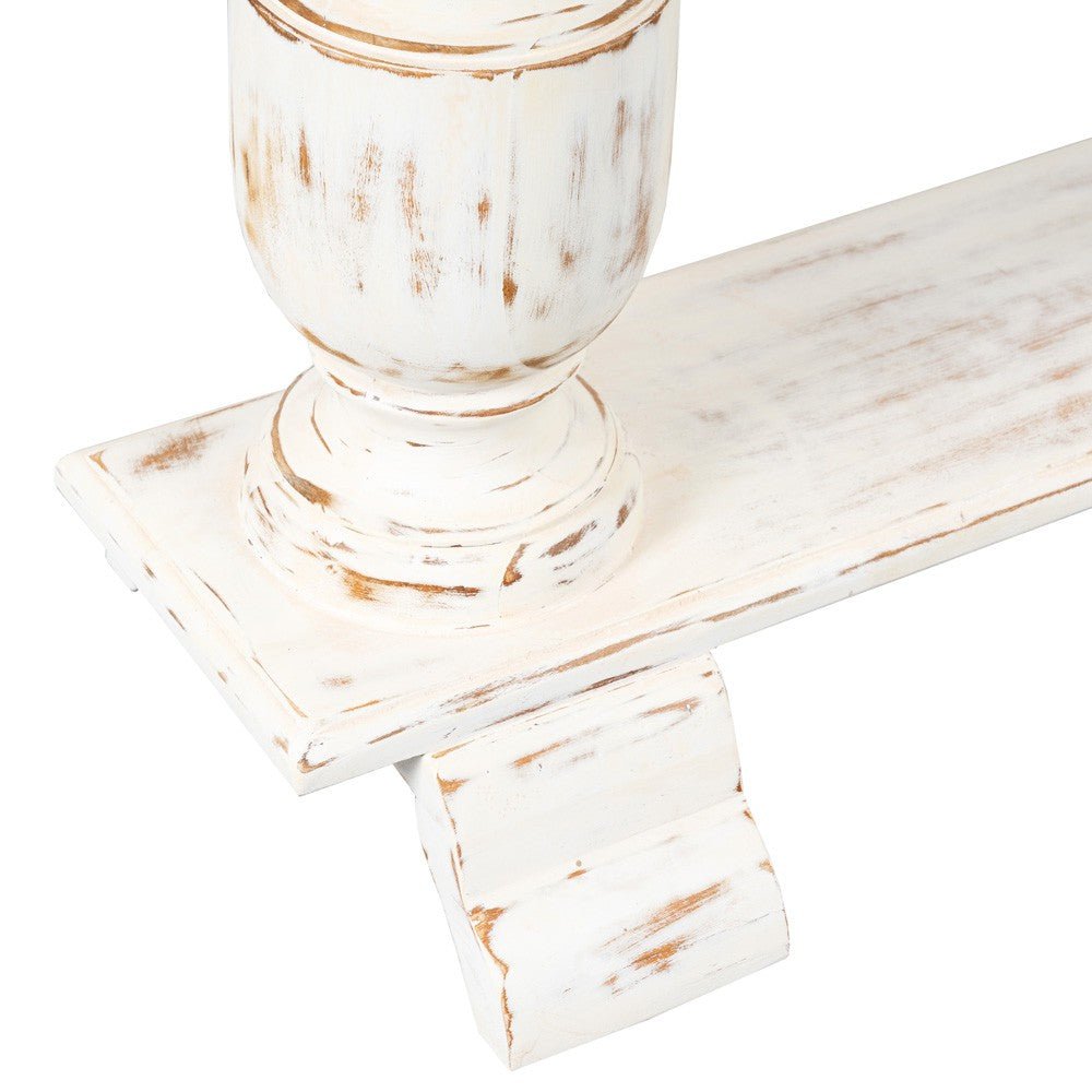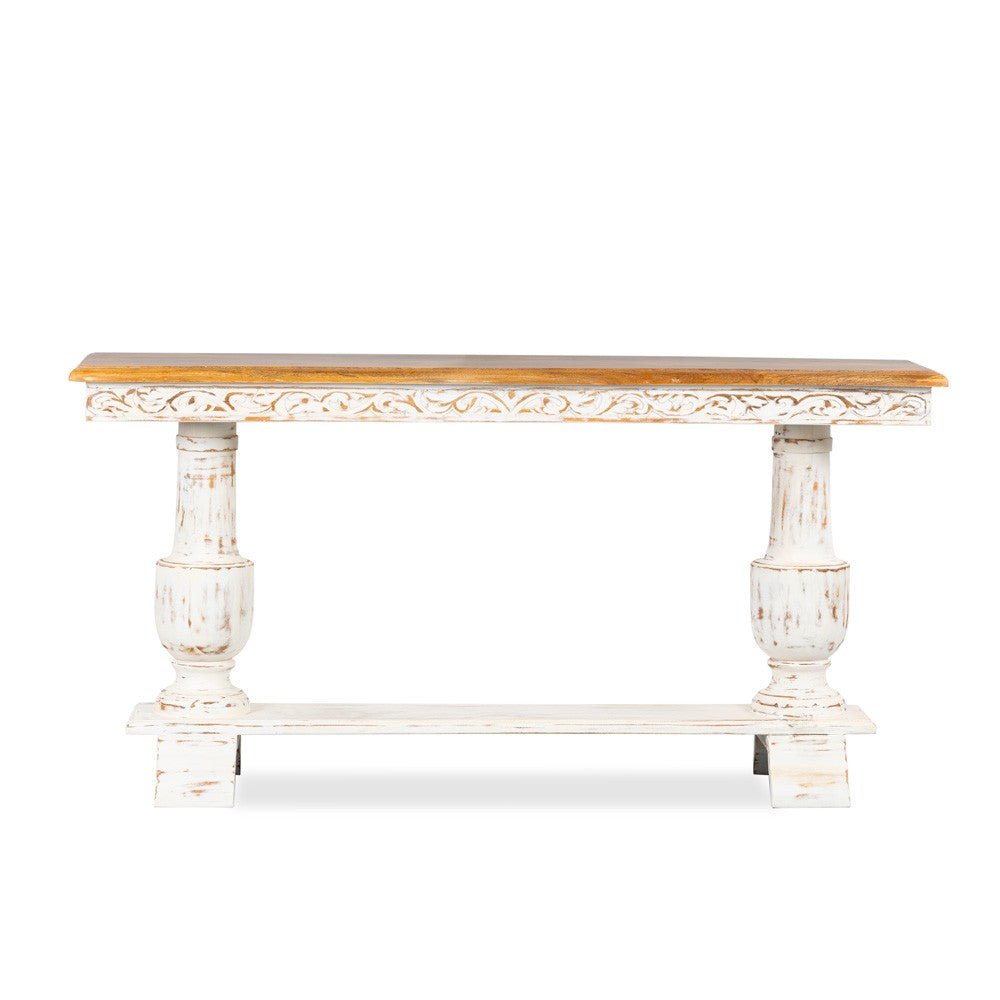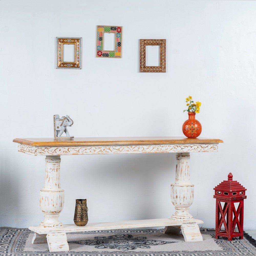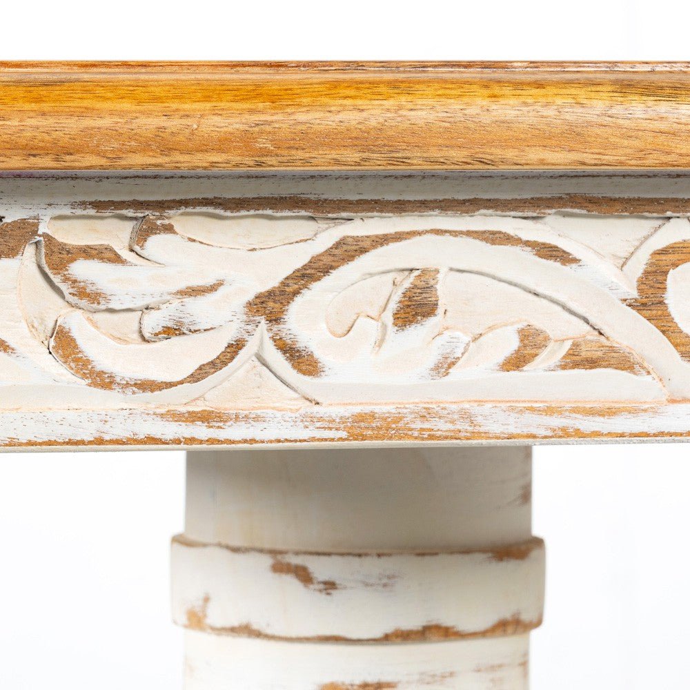 Hand Carved Mango Wood Entryway Console Table – White Distress