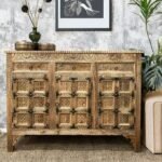 The warm natural wood tones highlight the beautiful grain of mango wood, making each piece truly one of a kind. Designed with spacious storage behind multiple carved doors, this sideboard is ideal for organizing dinnerware, serveware, linens, or everyday essentials while adding a bold statement to your interior.