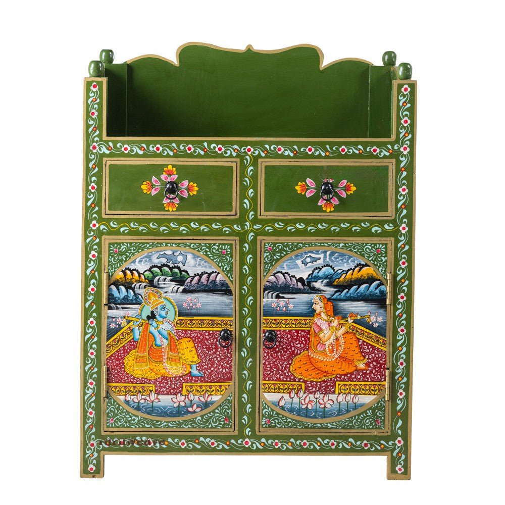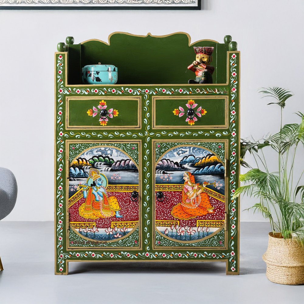 Hand-Painted Mango Wood Cabinet – Radha Krishna Design | Traditional Wooden Unit