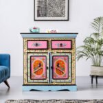 Hand-Painted Rajasthani Cabinet- Acacia Wood | Colorful Wooden Storage Sideboard
