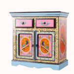 Add vibrant charm to your home with this hand-painted Rajasthani wooden cabinet, crafted with traditional artistry and rich multicolor detailing. Featuring beautiful bird motifs, floral patterns, and bright hues of pink, blue, yellow, and black, this cabinet becomes the perfect eye-catching statement piece for any room.