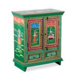 Crafted by skilled artisans, this cabinet includes two spacious doors and two bottom drawers, offering practical storage for home essentials while adding artistic charm to any room. The bright colours, floral motifs, and intricate designs make it a perfect statement piece for living rooms, hallways, pooja rooms, or ethnic décor setups.