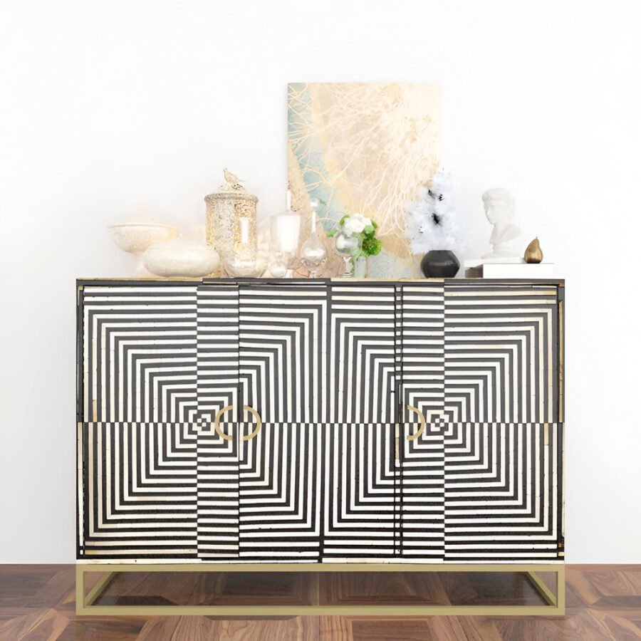 Bone Inlay 2 Door Storage Cabinet – Optical Illusion