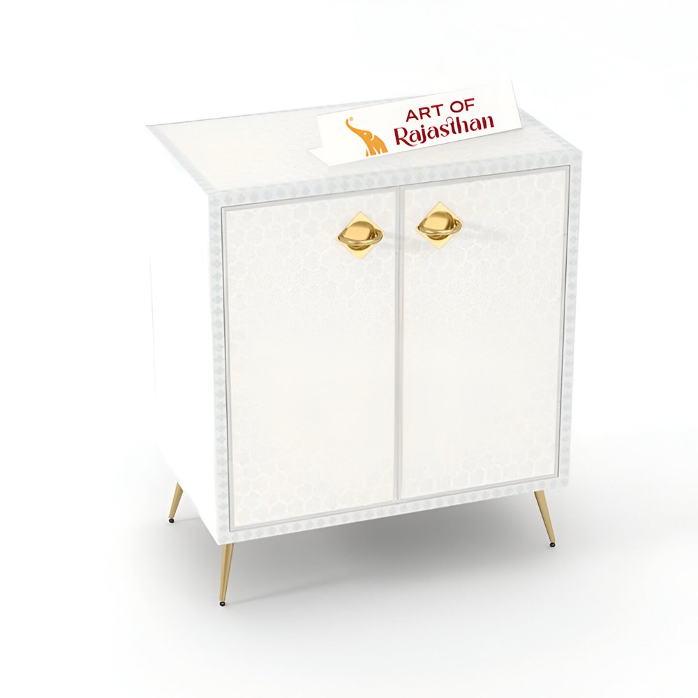 Inspired by the elegance of Moroccan artistry, the Bone Inlay 2 Door Storage Cabinet – Targua by Art of Rajasthan is a stunning statement of luxury and heritage. Handcrafted with intricate Targua-inspired patterns, this masterpiece features bone inlay, mother of pearl, and resin, framed in durable engineered wood with refined brass accents. Exquisite Targua Design: A mesmerizing geometric pattern that radiates elegance. Handcrafted Brilliance: Made with precision using bone, mother of pearl, and resin. Ample Storage: Two spacious doors reveal generous interior space.