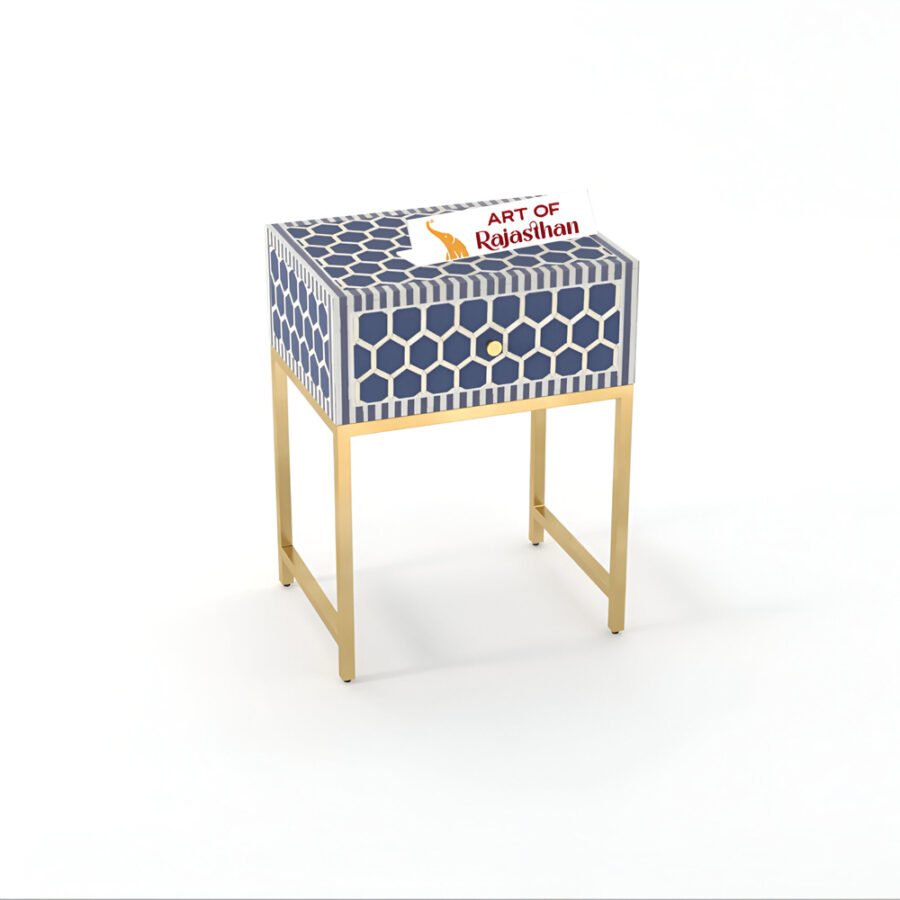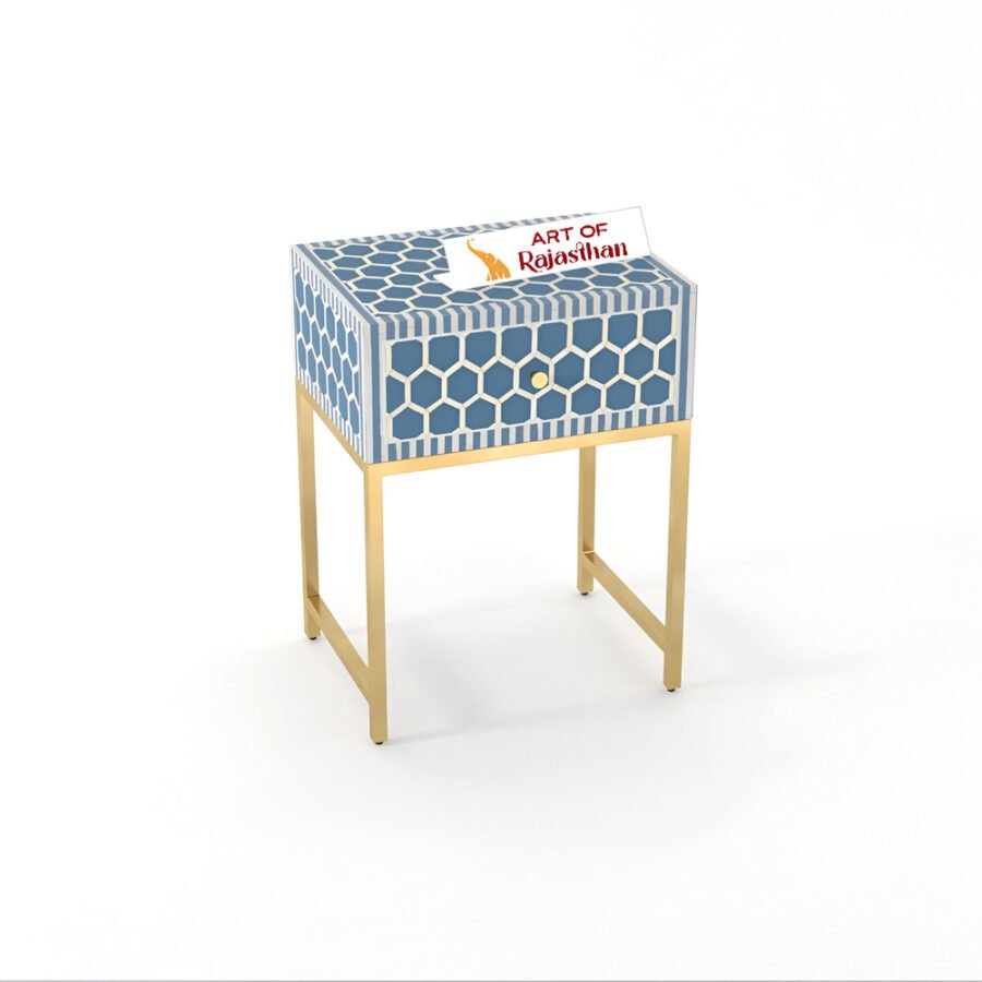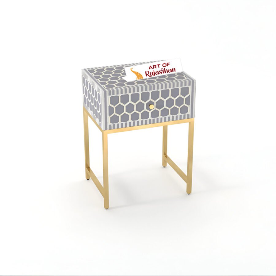 Bone Inlay Beside Table with Metal Legs – Honeycomb