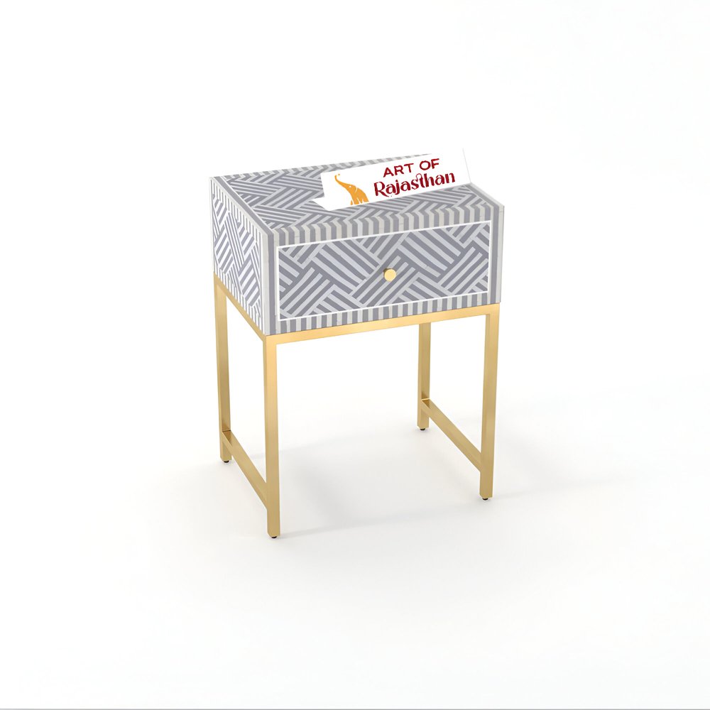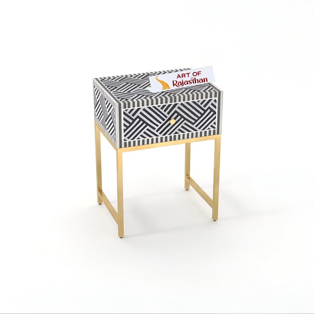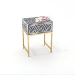 Bone Inlay Beside Table with Metal Legs – Chevron