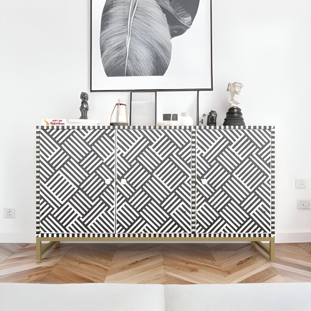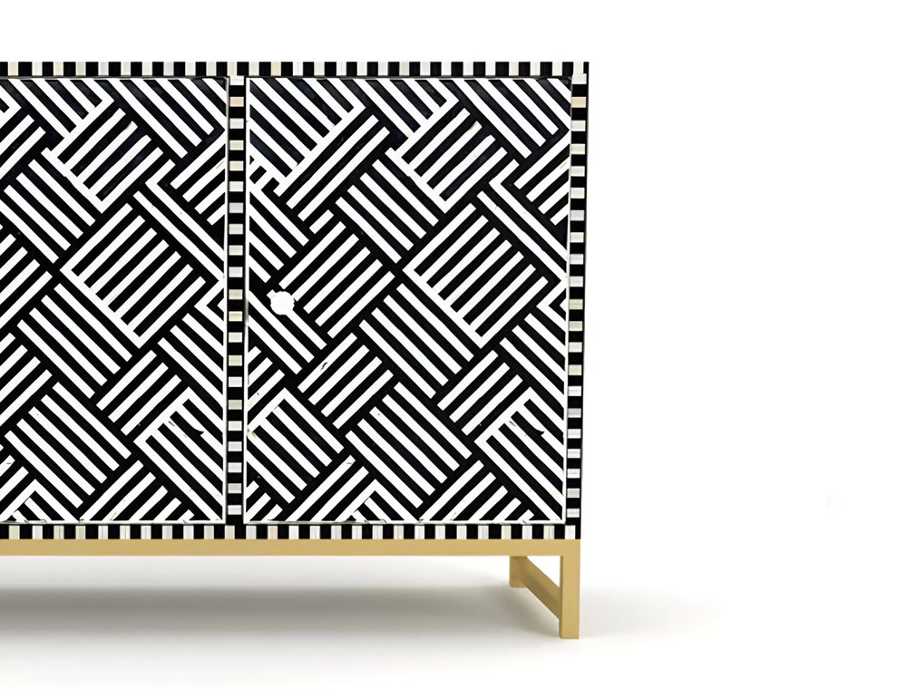 Bone Inlay Storage Cabinet – Chevron Black & White