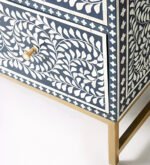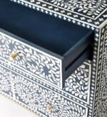 Transform your space with the intricate beauty of the Art of Rajasthan’s Bone Inlay Chest. Featuring a rich indigo base with a delicate white floral pattern, this 3-drawer chest is a stunning fusion of tradition and elegance. Meticulously handcrafted using bone inlay, mother of pearl, resin, and engineered wood, it offers durable craftsmanship, ample storage, and a sophisticated statement for any room.