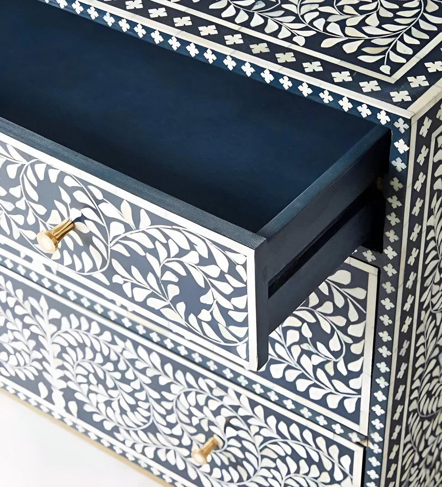 Artisan Elegance – Bone Inlay Chest in Rich Indigo & White