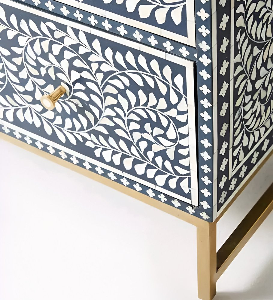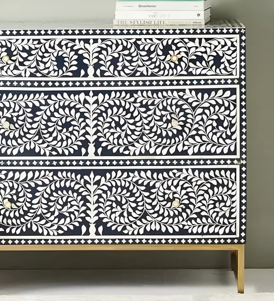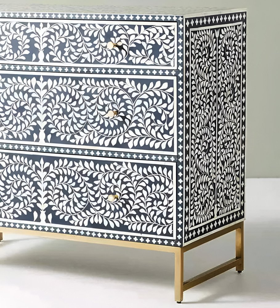 Bone Inlay Chest of 3 Drawers – Intricate Floral Pattern