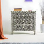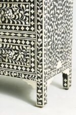 Timeless Elegance in Every Detail – Bone Inlay Chest of 3 Drawers (Floral Black & White)