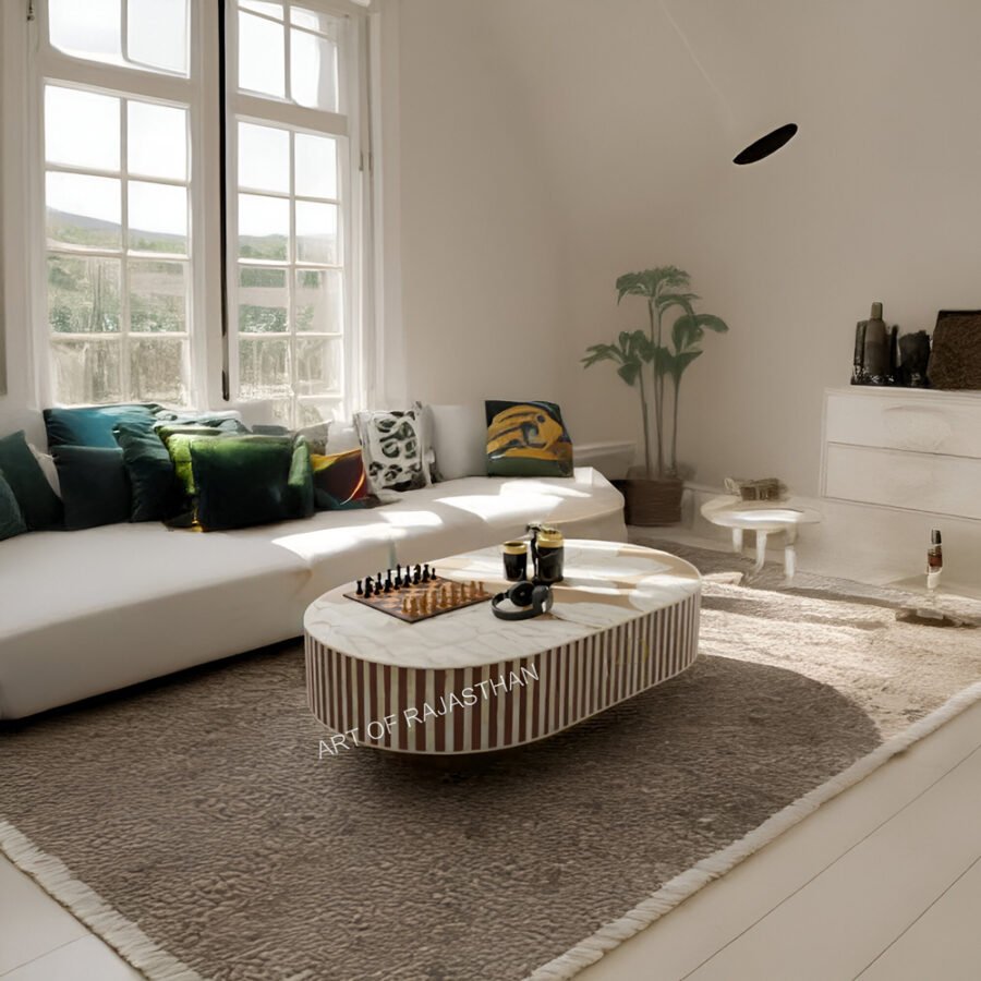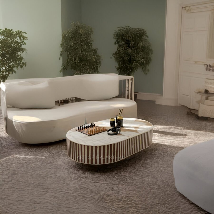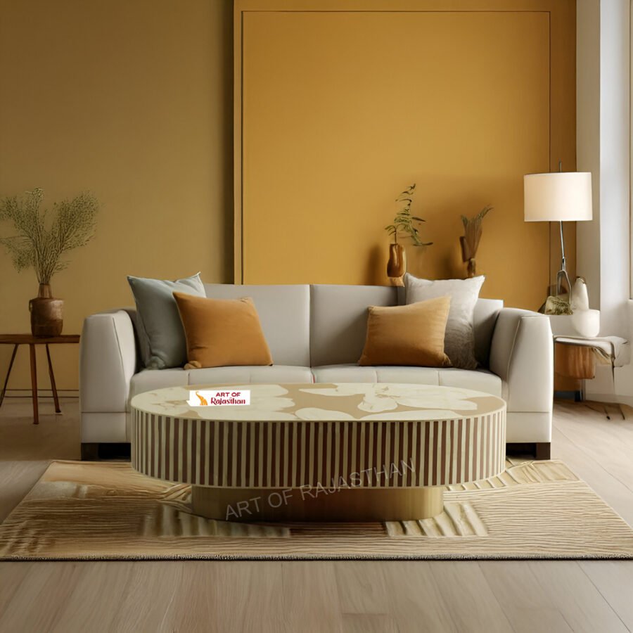 Hibiscus Floral Bone Inlay Oval Coffee Table – Art of Rajasthan