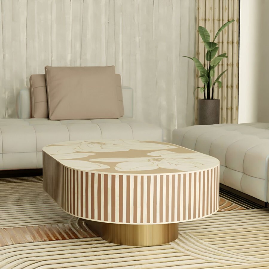 Bone Inlay Oval Shape Coffee Table – Hibiscus Floral