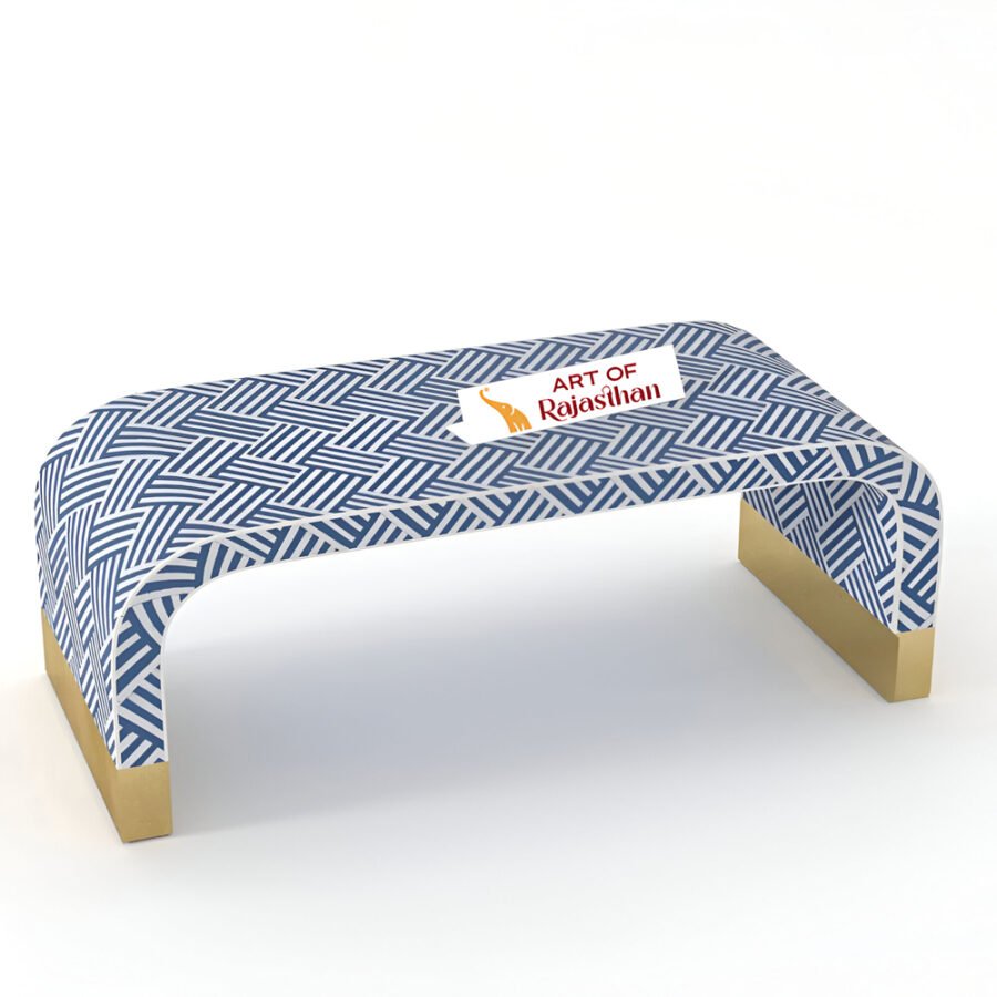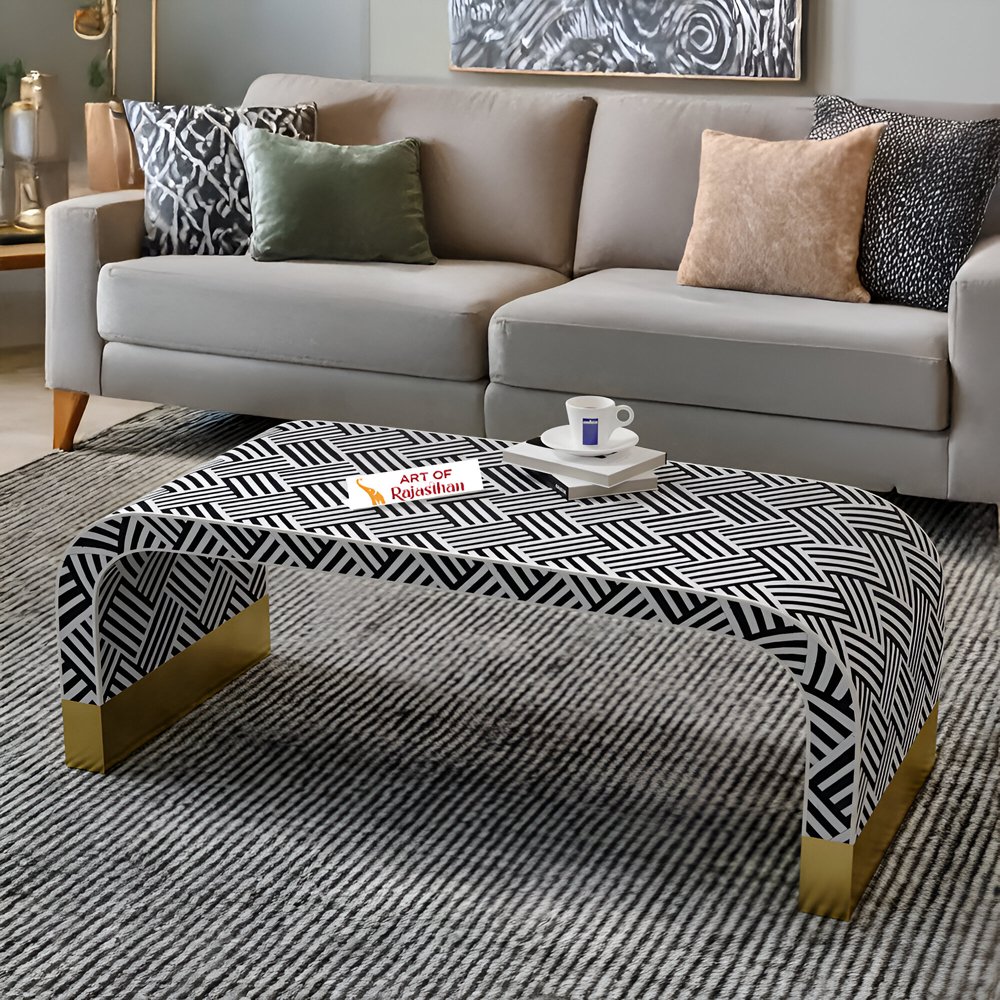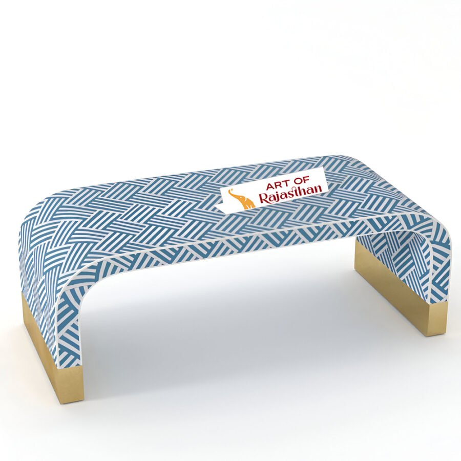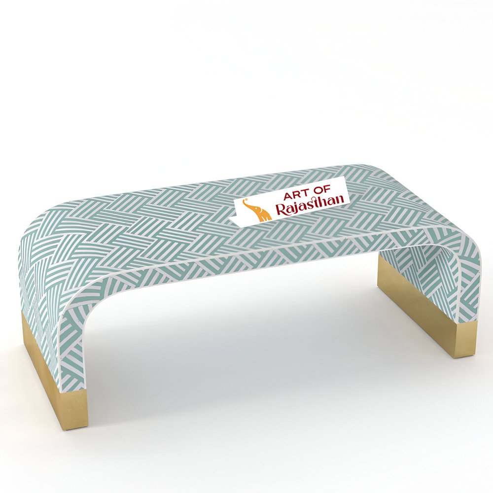 Transform your living space with the Bone Inlay Elite Rectangular Coffee Table by Art of Rajasthan. Handcrafted with intricate Chevron bone inlay, Mother of Pearl, Resin, and Brass accents, this stunning table adds sophistication and luxury to any room. Available in vibrant shades like Classic Black, White, Grey, Teal Green, Teal Blue, and Indigo, it perfectly complements both modern and traditional interiors. Dimensions: L115 x D60 x H45 (CM)