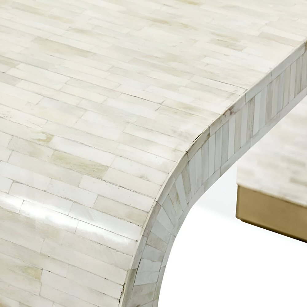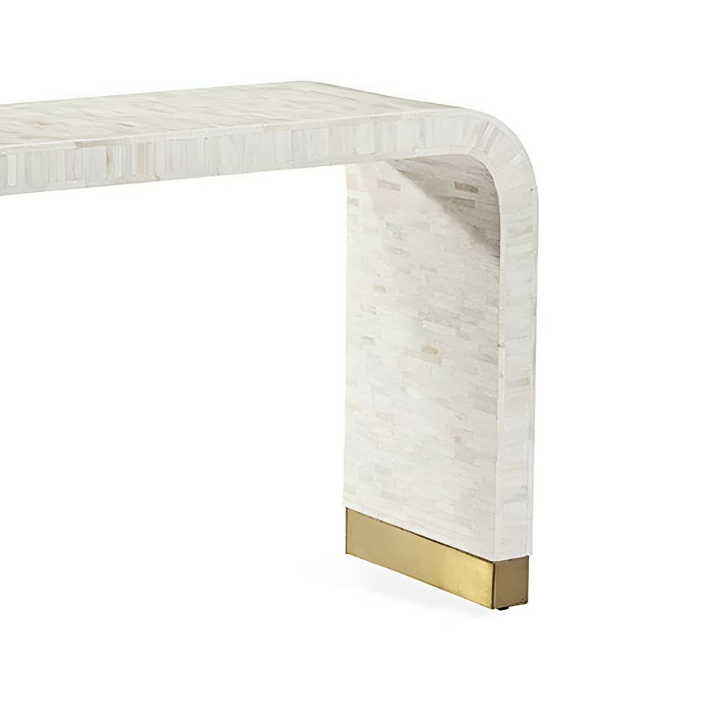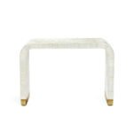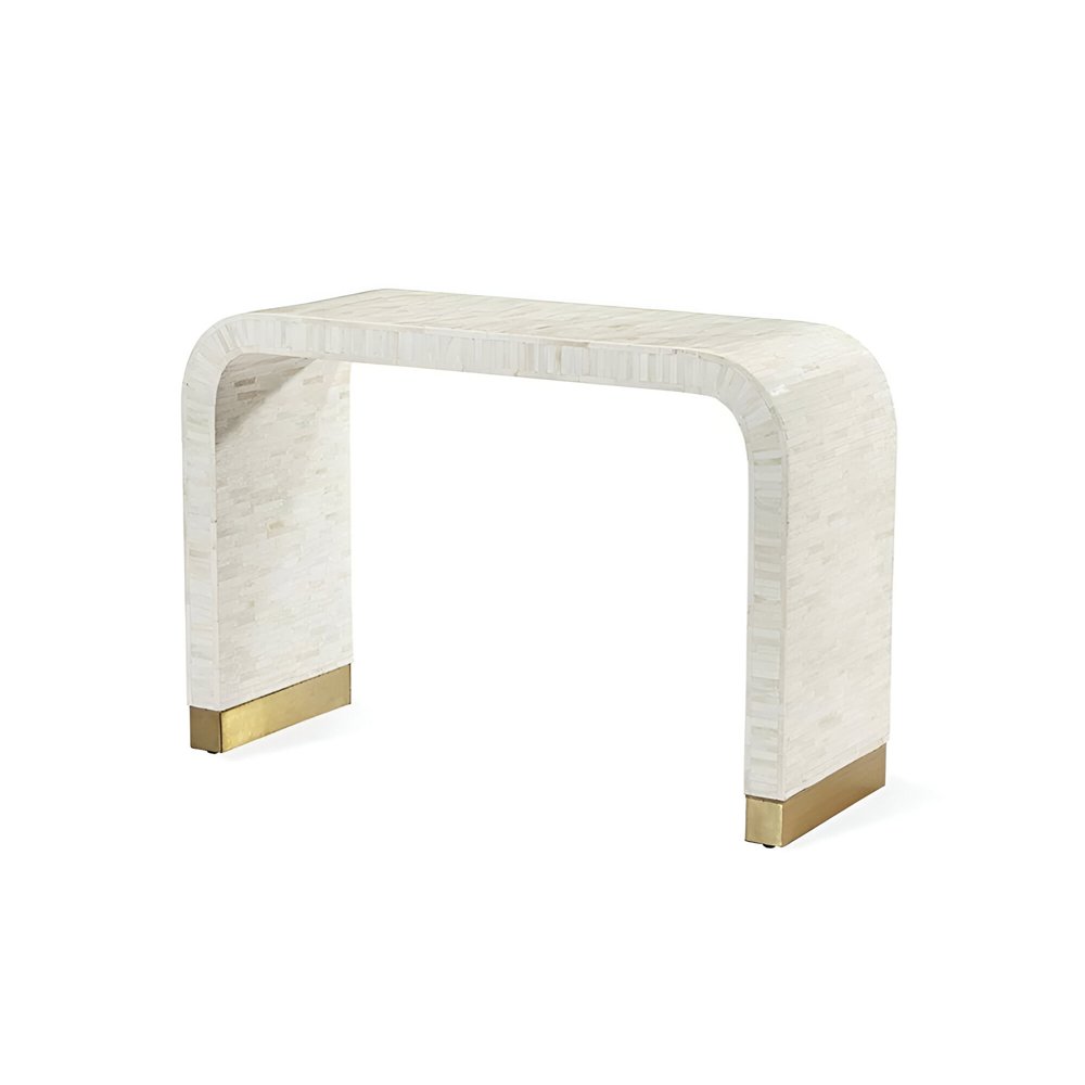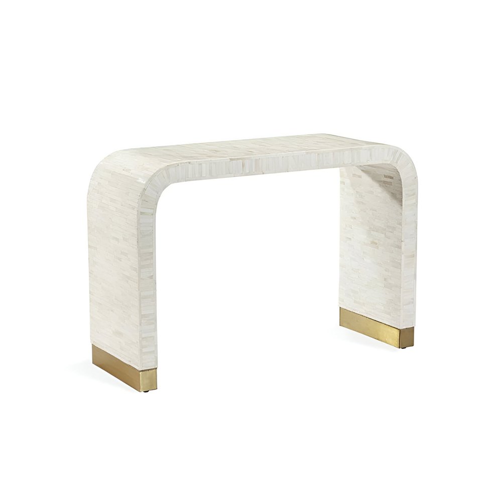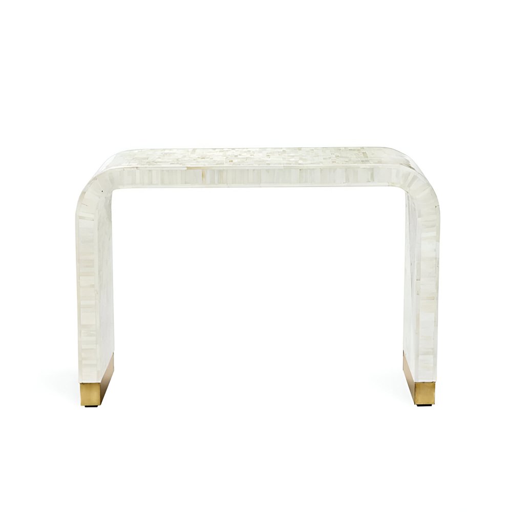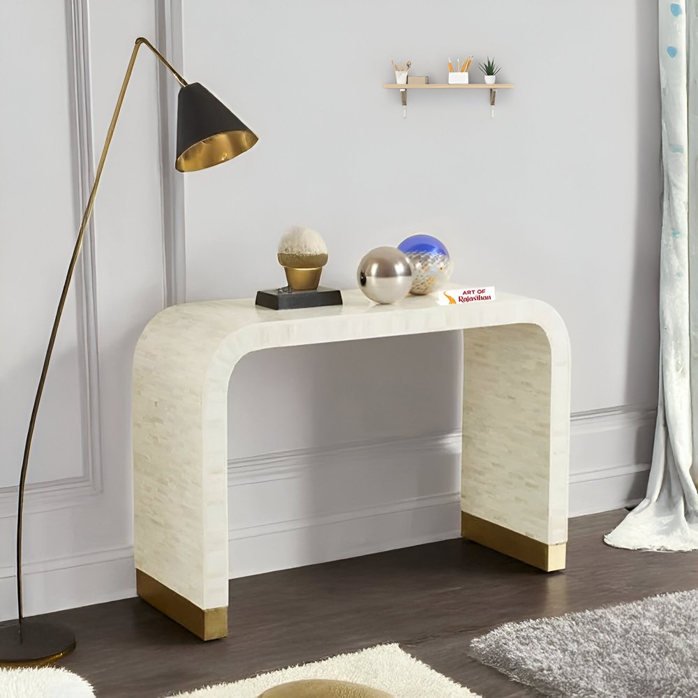 Elevate your entryway with the Bone Inlay Entryway Delicate Elegance Console Table from Art of Rajasthan. Crafted with intricate bone inlay and mother of pearl, this elegant console features a timeless design that complements modern and traditional interiors. The table’s white finish and metal accents add sophistication to any space. With dimensions of W120 x D40 x H80 (CM), this console table offers both style and functionality for your home.