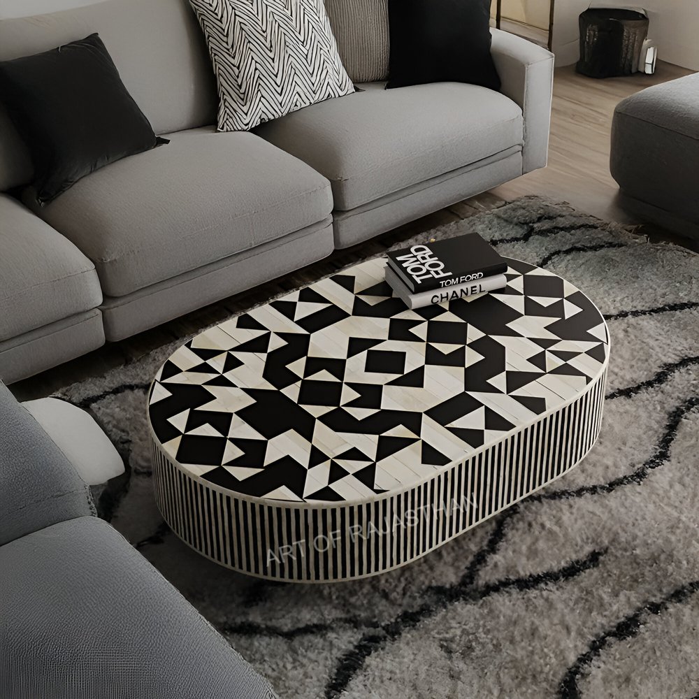 Kingsley Bone Inlay Oval Coffee Table – Art of Rajasthan