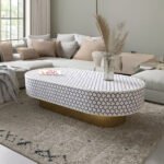 Bone Inlay Oval Shape Coffee Table with Metal Base – Targua